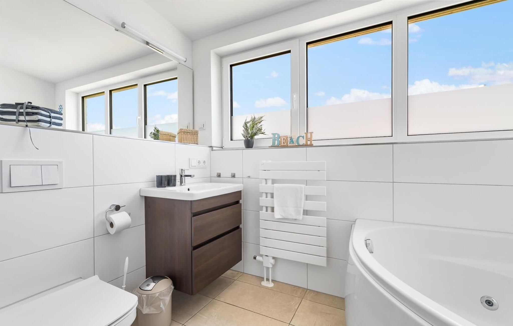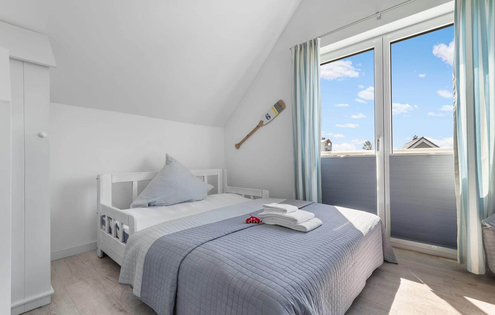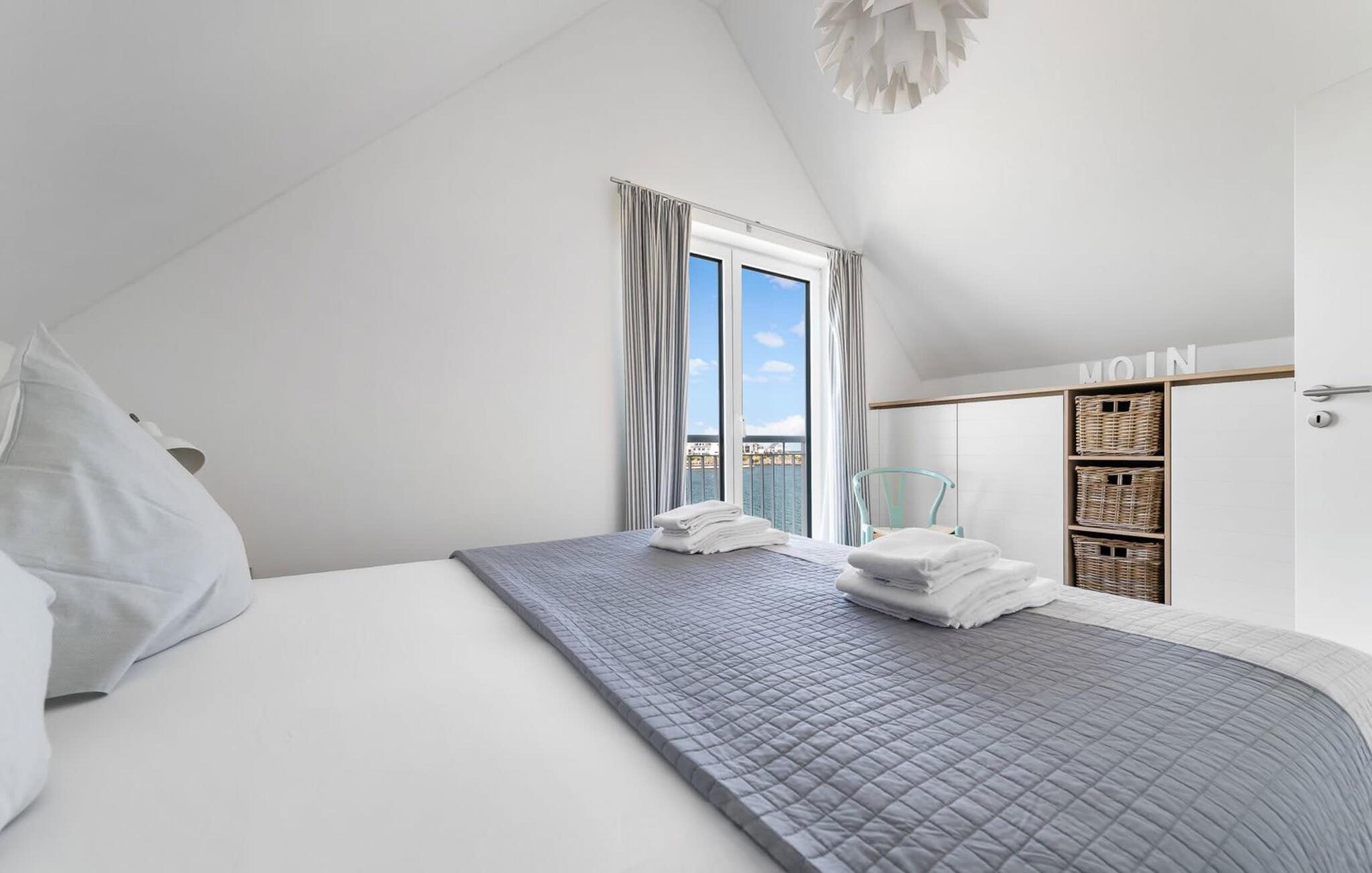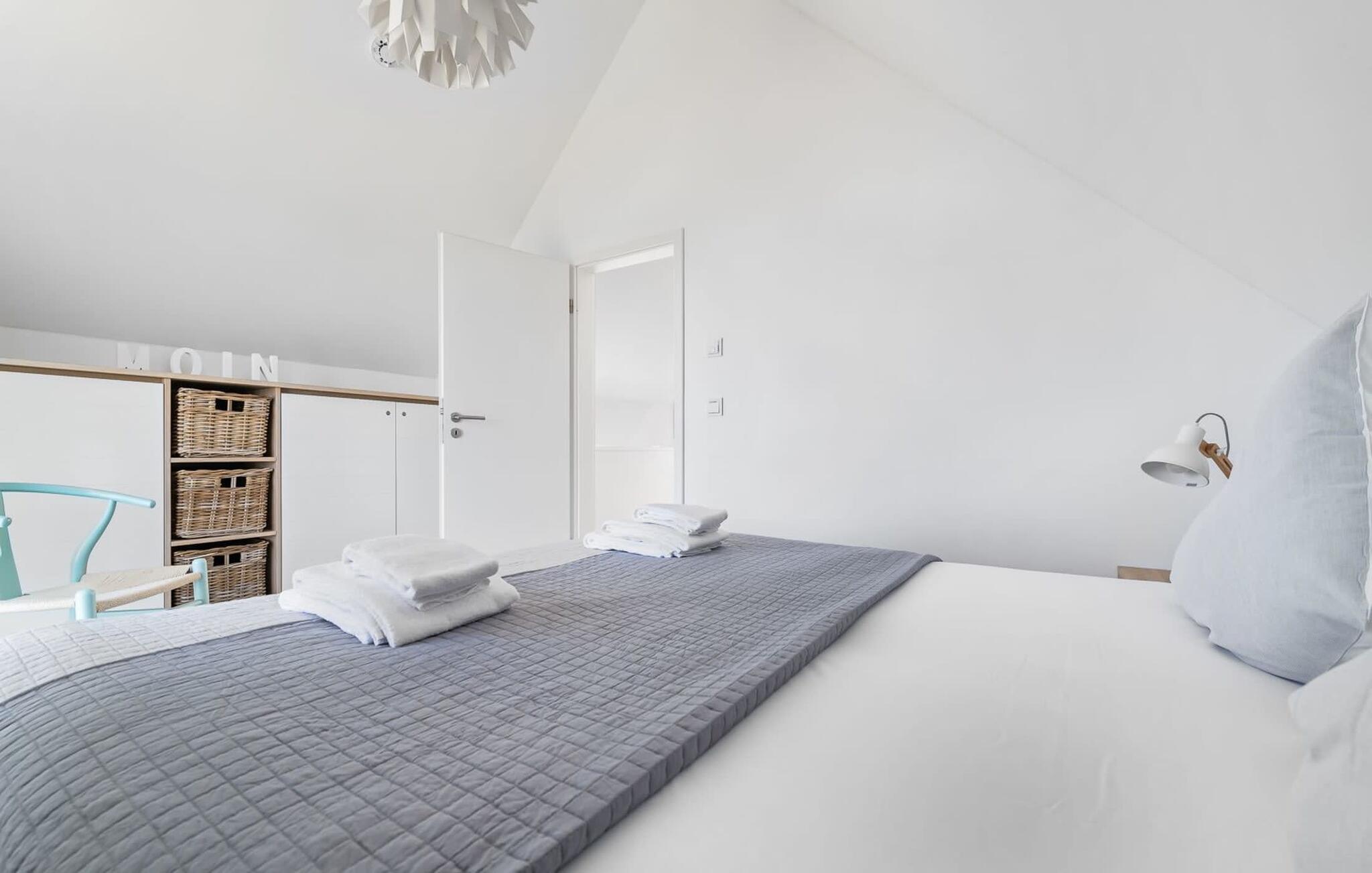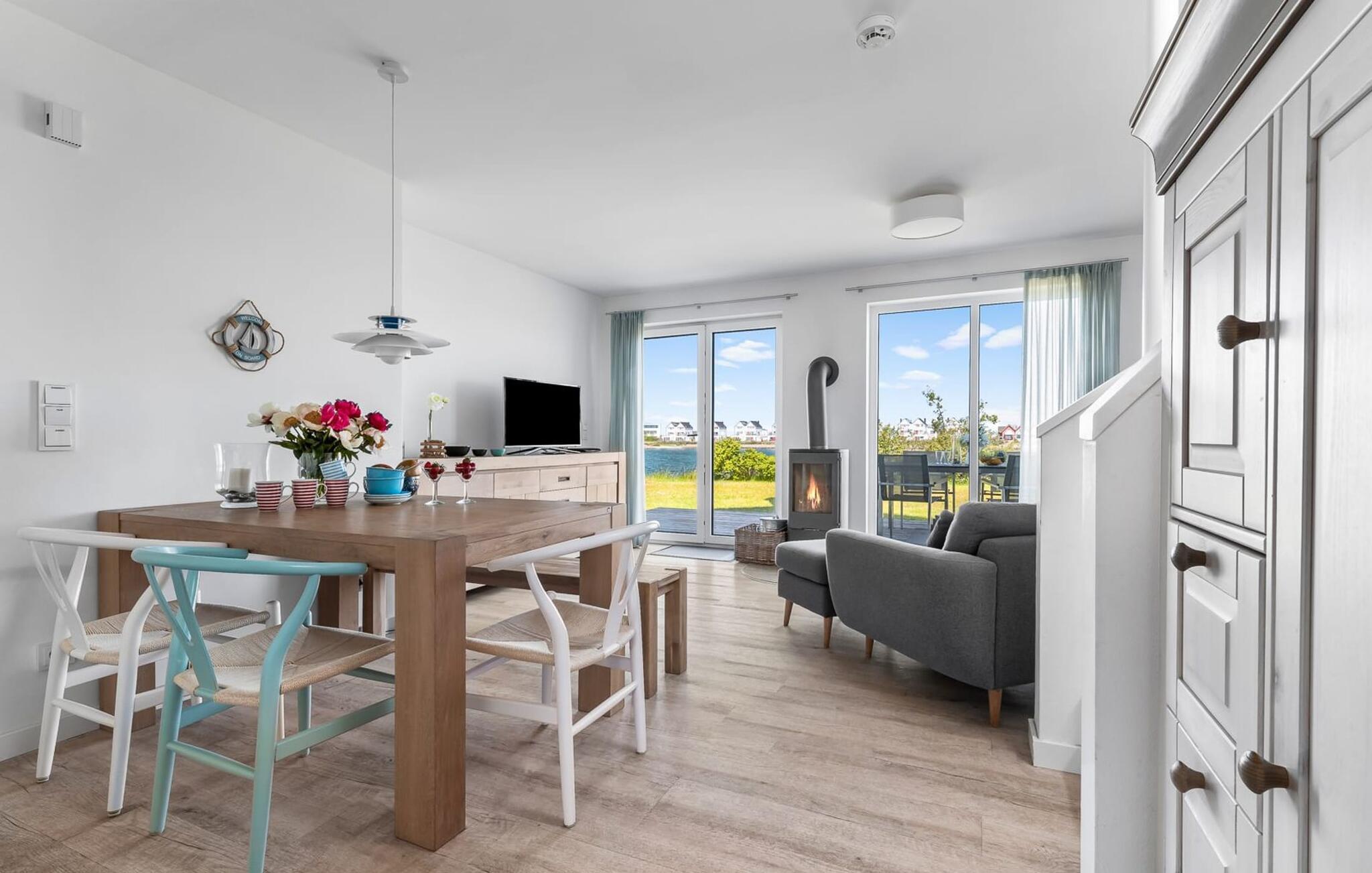 Oplev uforglemmelige feriestunder i sommerhuset Strandkorb. Den højkvalitets ferielejlighed i maritim og strandhusstil byder på en fantastisk beliggenhed lige ved vandet i første række og egen have. Weidefelder Strand, regionens mest kendte strand for svømning, surfing og kitesurfing, ligger blot et par minutters gang derfra. Opholds- og spisepladsen i stueetagen, indrettet i lyst træ, fører til en smuk, rummelig panoramaterrasse og haven lige ud til vandet. Mens I solbader, griller eller læser afslappende, kan I nyde den betagende udsigt over vandet og havnebiografen med de sejler- og sportsbåde, der passerer forbi. Maritim flair er garanteret. Og når Østersøvejret er til det, giver en hyggelig aften ved pejsen eller hjemmeunderholdningsprogrammet på den indbydende sofa den rette balance. Den ekstra terrasse på sydsiden af huset med dens komfortable strandstol inviterer jer til at slappe af, nyde solen og slappe af og sikrer, at alle solskinstimer nydes fuldt ud. Det spisekøkken er udstyret til en høj standard og lader intet tilbage at ønske. Også i stueetagen er der et rummeligt brusebadeværelse med vaskemaskine. På øverste etage ligger de to soveværelser, som ligeledes er maritim, lyst og venligt indrettet: bagerst, med rummeligt indbygget klædeskab, kan I nyde udsigten over vandet fra dobbeltsengen. Den forreste har to enkeltsenge og udsigt til OstseeResort og Weidefelder Strand. Børnebøger og en samling af spil inviterer jer til at blive hængende, slappe af og lege på sovesofaen, der også er tilgængelig. Om natten tilbyder sofaen to børn ekstra plads til at sove. Det fuldt udstyrede badeværelse er også placeret på denne etage: en oase af velvære med boblebad, ekstra bruser og infrarød sauna. Indretningsstilen svarer til sommerhusets eksklusive beliggenhed. Den pastelfarvede, venlige og elegante atmosfære giver straks alle en følelse af ro, sindsro og generøsitet. Mere end ferie. To parkeringspladser foran huset og WiFi fuldender tilbuddet. Et ophold i sommerhuset Strandkorb bliver en ekstraordinær og afslappende ferieoplevelse. Bemærk venligst: OstseeResort Olpenitz er meget populært, og der bygges fortsat i parken. Ikke desto mindre kan I se frem til en 5-stjernet standard og et førsteklasses ophold. Byggeaktiviteterne kommer ikke til at forstyrre jer på ferien, og derfor gives der ikke yderligere afslag i prisen.