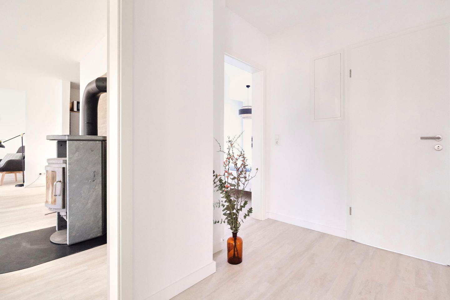 Ankommen und genießen.. Die sehr geschmackvoll und liebevoll gestaltete Ferienwohnung eines ehemaligen Bauernhauses lädt zum Verweilen und Entspannen ein. Ob mit der ganzen Familien oder ein Trip mit Freunden - der große Wohn- und Essbereich ist das Herzstück der Wohnung. Hier kann gemeinsam gekocht, gegessen, gespielt und gelacht werden. Für eine zusätzlich gemütliche Atmosphäre sorgt ein Kaminofen in der Sofaecke.