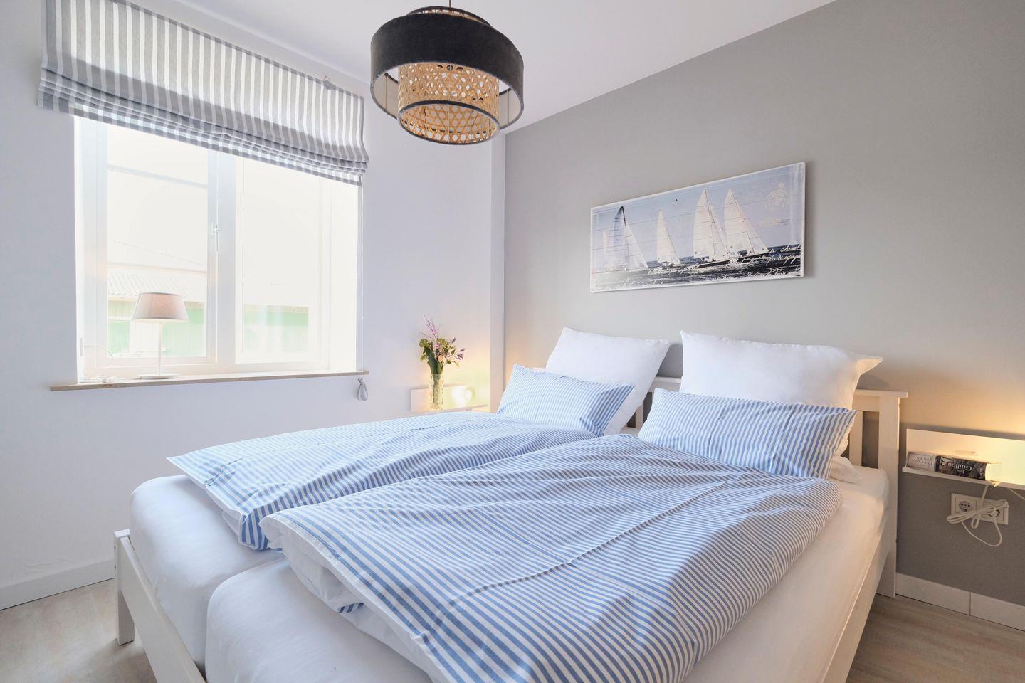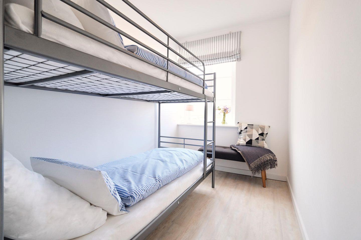 Die 6 -Zimmer-Wohnung ist mit drei Doppelbetten, zwei Einzelbetten und einem Etagenbett ausgestattet. Sie kann mit bis zu 10 Personen bewohnt werden, Nutzung von WLAN ist kostenfrei möglich. Die moderne und voll ausgestattete Einbauküche ist ideal für Selbstversorger. Die Wohnung verfügt über ein neues Duschbad mit WC.