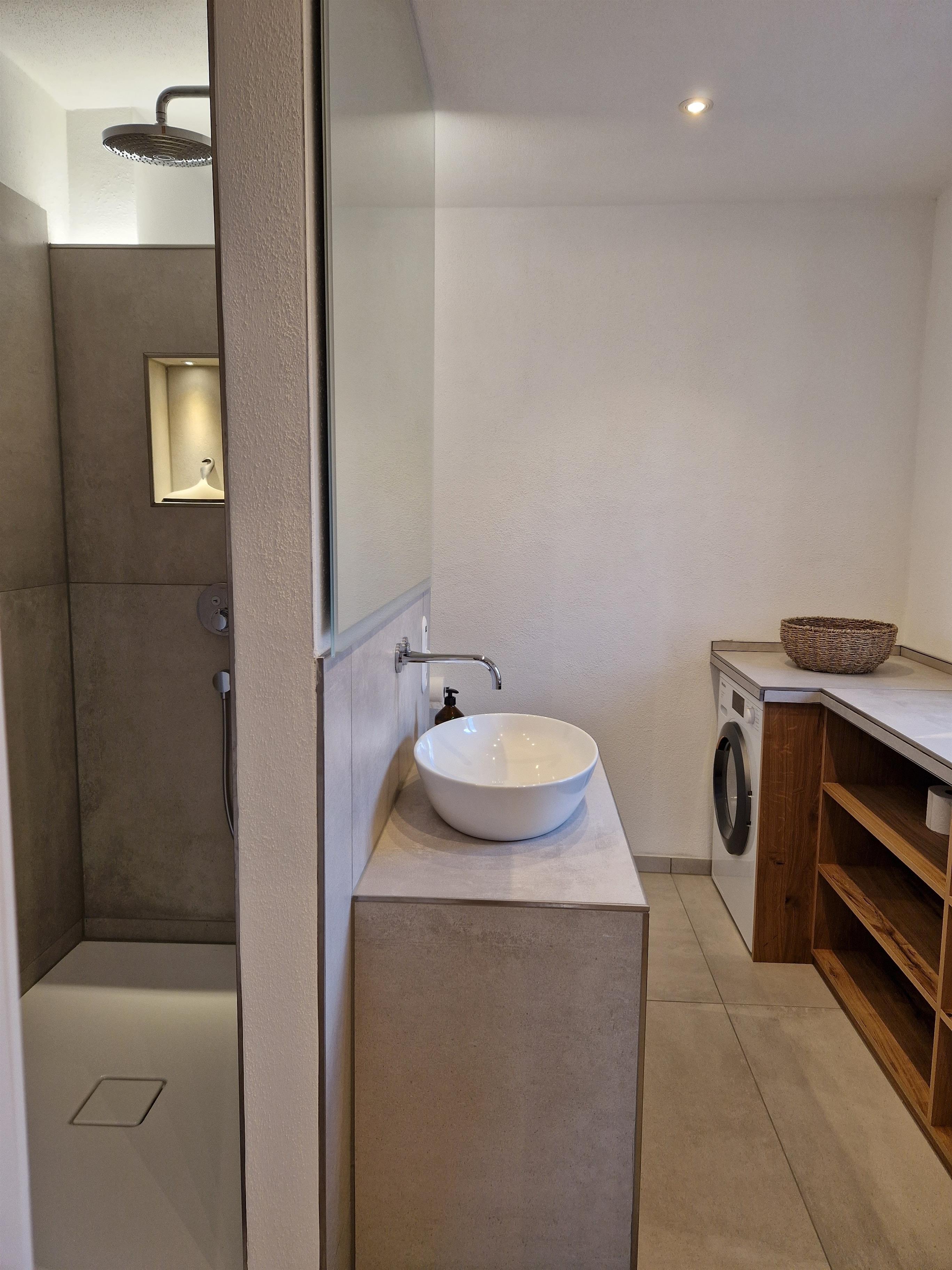 Das großzügige Schlafzimmer ist mit einem komfortablen Boxspringbett (180x200cm), Einbauschrank, TV und weiteren Annehmlichkeiten ausgestattet. In der voll ausgestatteten Wohnküche mit Leder-Sitzecke, Essplatz und moderner Technik lässt es sich hervorragend entspannen und kochen. Das hochwertige Bad mit Regendusche und Waschtrockner sowie eine E-Ladestation im Hof (gegen Gebühr) runden das Angebot ab.