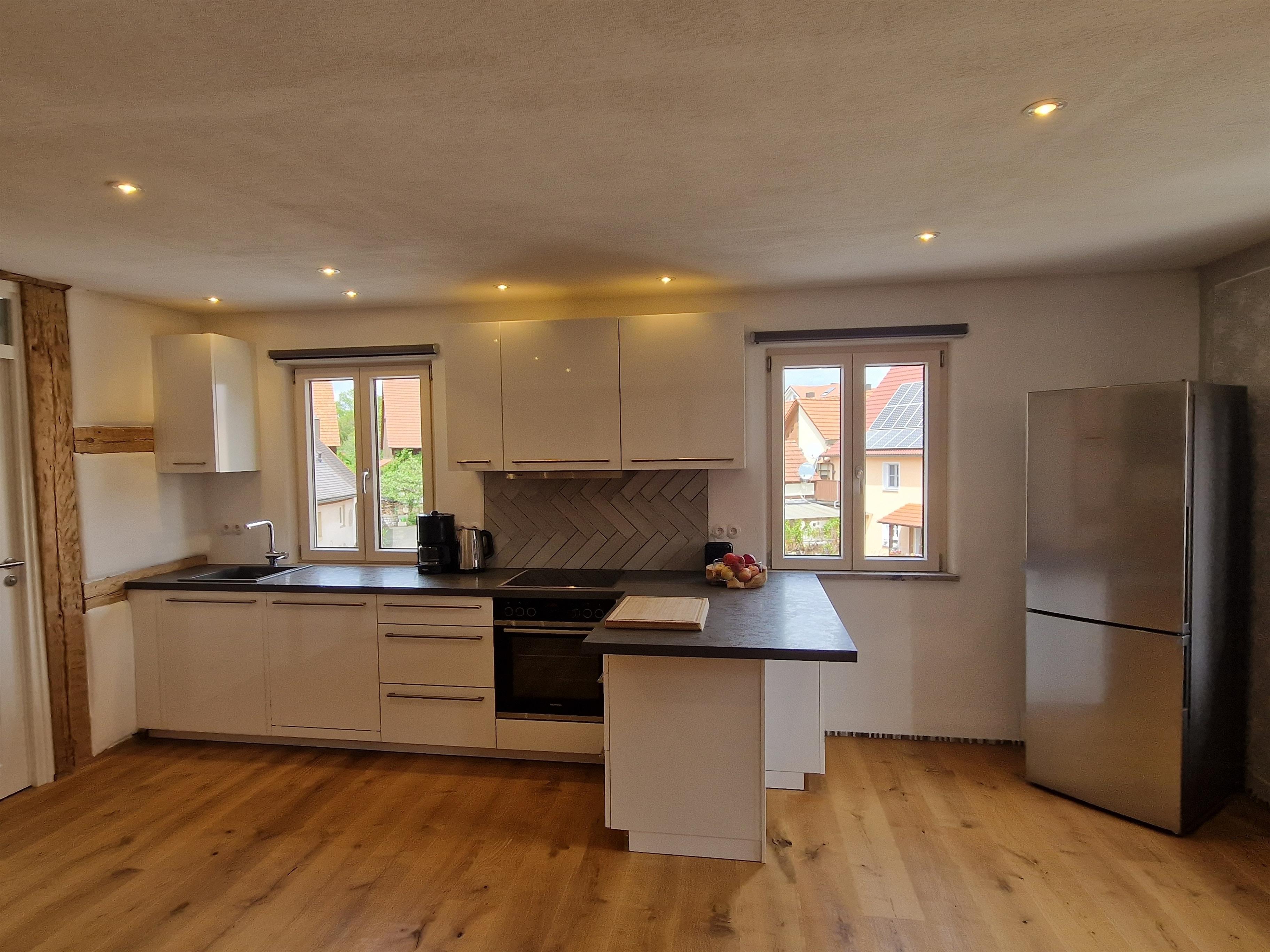 Das großzügige Schlafzimmer ist mit einem komfortablen Boxspringbett (200x200cm), Einbauschrank, TV und weiteren Annehmlichkeiten ausgestattet. In der voll ausgestatteten Wohnküche mit Leder-Sitzecke, Essplatz und moderner Technik lässt es sich hervorragend entspannen und kochen. Das hochwertige Bad mit Regendusche und Waschtrockner sowie eine E-Ladestation im Hof ( gegen Gebühr ) runden das Angebot ab.