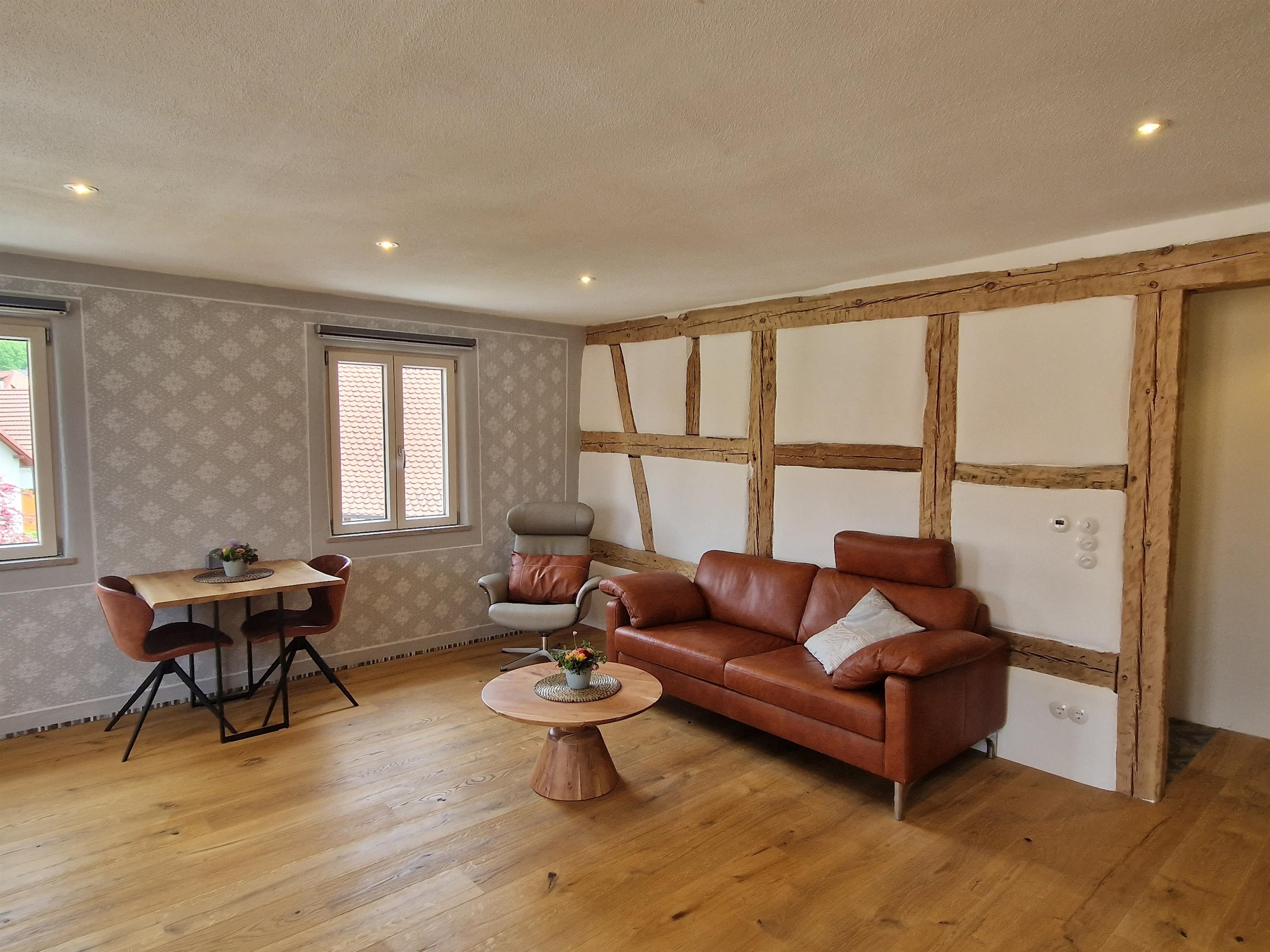 Die stilvoll sanierte Altbauferienwohnung "Stübla" im Erdgeschoss bietet dank Eichenholzparkett, Kalkputz und Kalkfarben ein gesundes Wohnklima sowie kostenfreies WLAN.