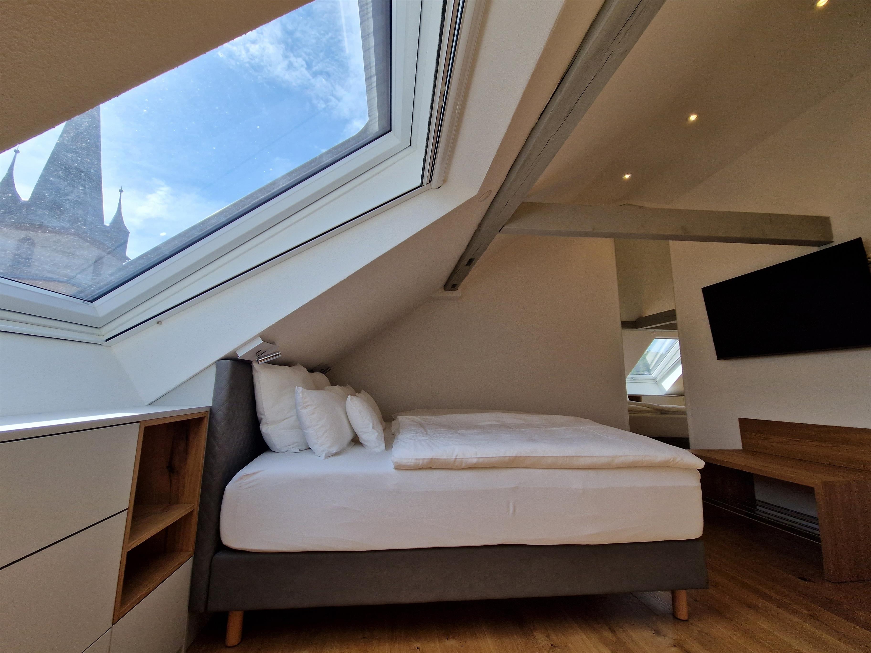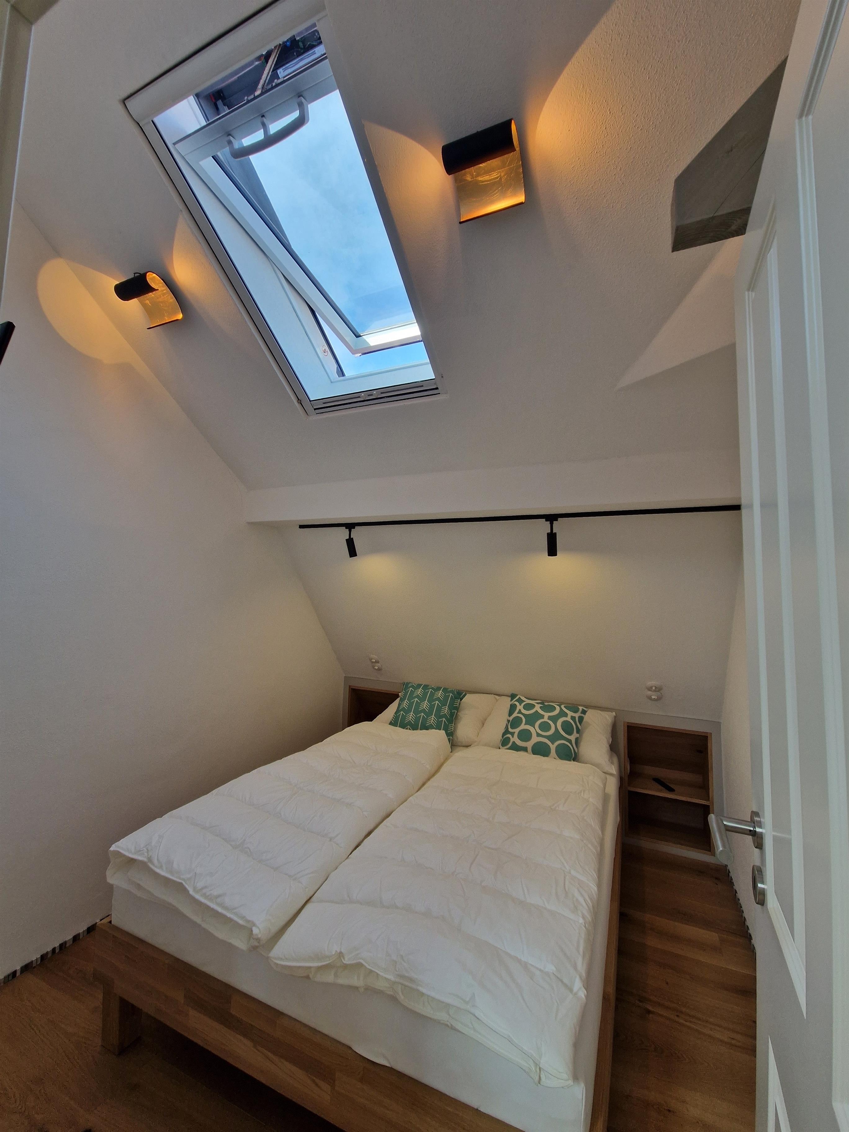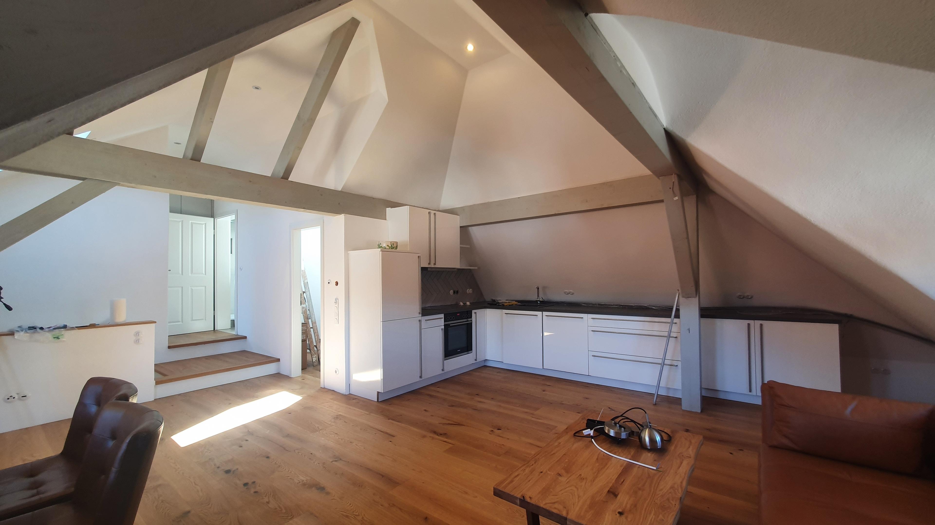 Die stilvoll sanierte Altbauferienwohnung "gute Stube" im Dachgeschoss bietet dank Eichenholzparkett, Kalkputz und Kalkfarben ein gesundes Wohnklima sowie kostenfreies WLAN.
