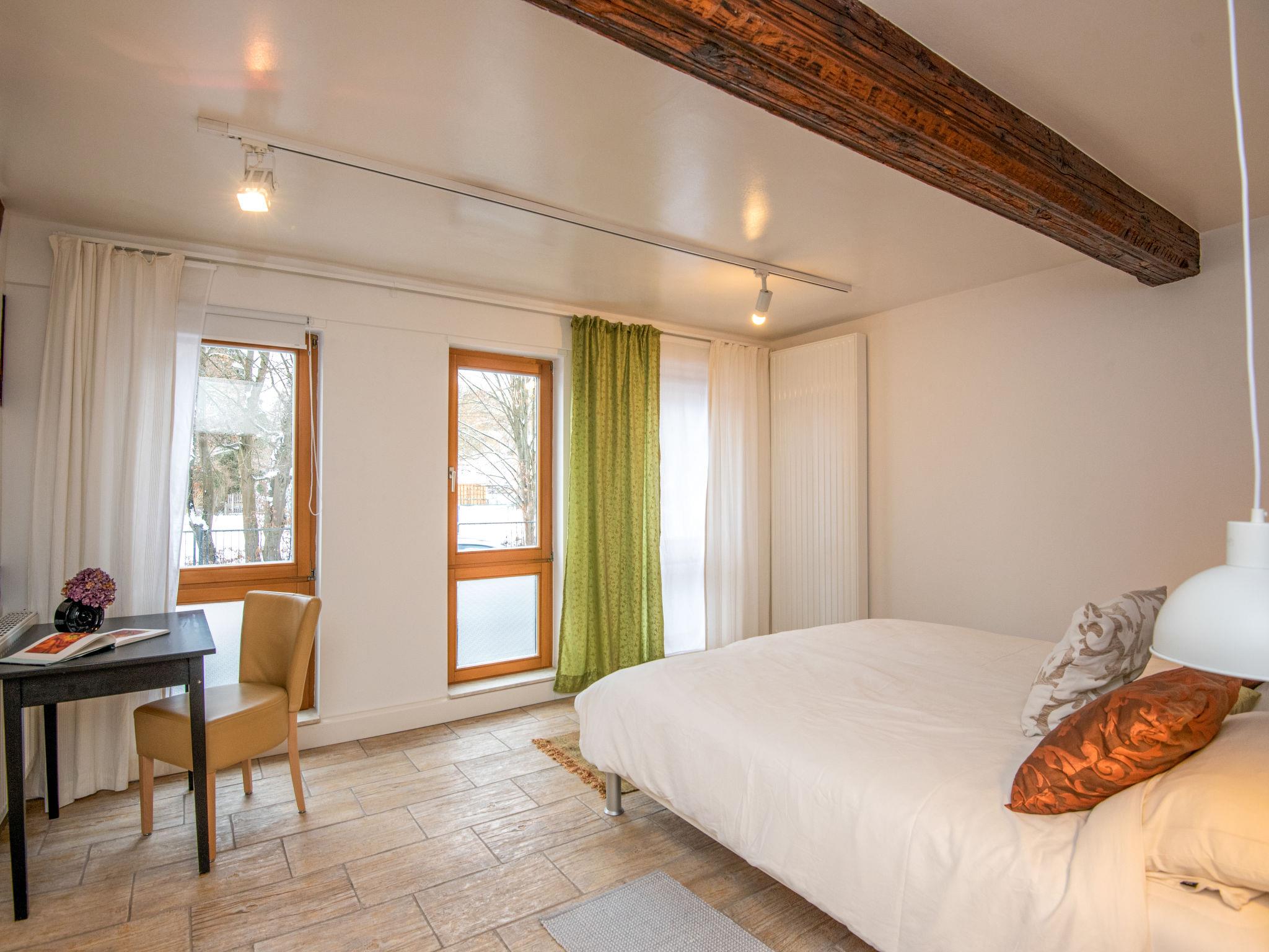 "Eliese", 2-room apartment 57 m2, on the ground floor. Renovated in 2021, modern and cosy furnishings: living/sleeping room with 1 double sofabed, dining table and cable TV (flat screen). 1 room with 1 double bed. Kitchenette (oven, dishwasher, 4 ceramic glass hob hotplates, toaster, kettle, microwave, freezer, electric coffee machine) with bar. Sep. WC, bath/shower/WC. Gas heating. Patio 30 m2. Terrace furniture, barbecue (portable), deck chairs (2). Facilities: washing machine, baby cot. Internet (WiFi, free). Parking (1 car). Please note: non-smokers only. Maximum 2 pets/ dogs allowed. Smoke alarm.
