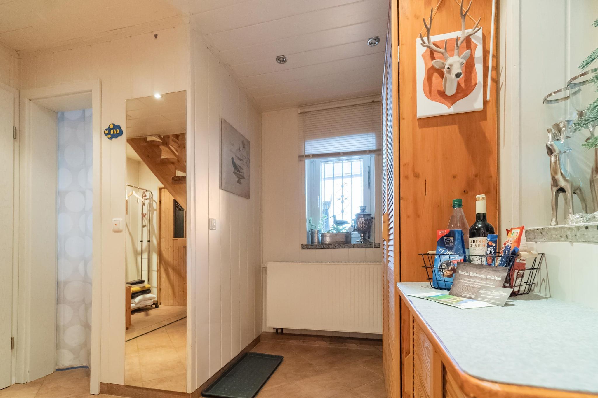 Dette lille, men yderst hyggelige feriehus i Suhl på den sydlige skråning af Thüringer Wald ligger roligt på en stor grund. Familier, men også venner, kan slappe af her, tilbringe smukke stunder på terrassen og slukke i hotellets sauna. Suhl er omgivet af en romantisk bjergverden med endeløse skove, ikke langt fra Tysklands mest berømte vandresti i høj højde, Rennsteig. Et paradis for sommer- og vinterferier midt i Thüringer Wald. Vi anbefaler et besøg i Suhls historiske centrum med forskellige museer og zoo. Der er også mange muligheder for svømning og sport såsom Ottilienbad, udendørs pools og tennisbaner. Bymidten med butikker ligger kun 1 km fra huset. Det lille hus er hyggeligt og smagfuldt indrettet og har aircondition samt et veludstyret køkken. Når vejret er godt, kan du grille på terrassen. Du kan parkere på stedet.