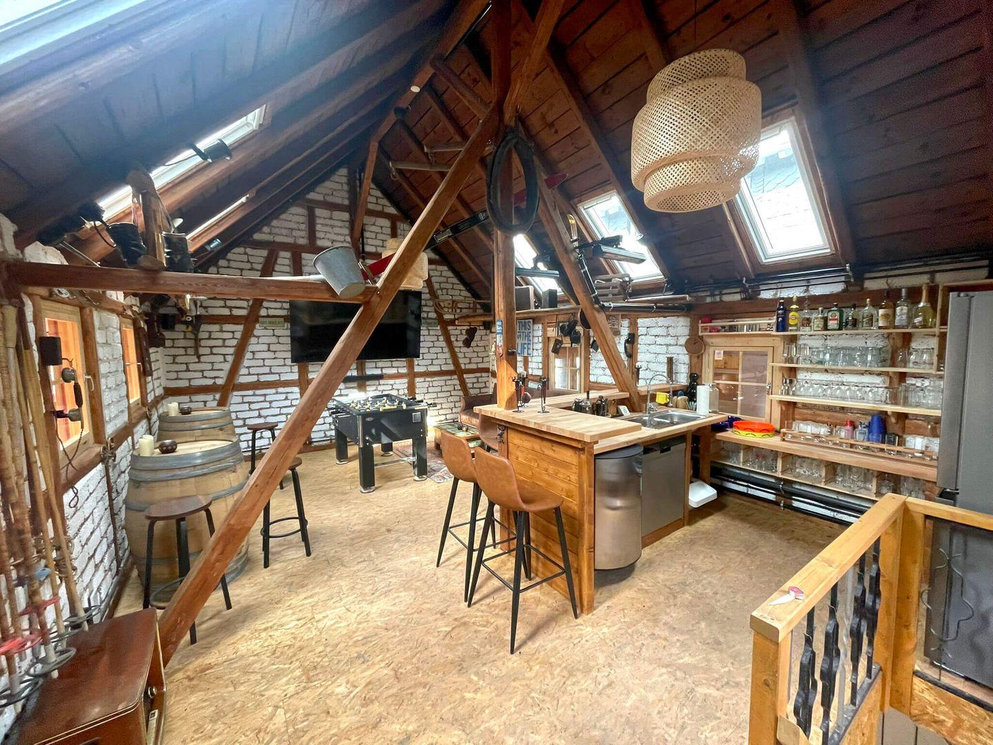 Ein echtes Alleinstellungsmerkmal: Die große, beheizbare Scheune mit eigener Bar – nur für euch! Ideal für Geburtstage, Spieleabende oder einfach gemütliches Beisammensein.