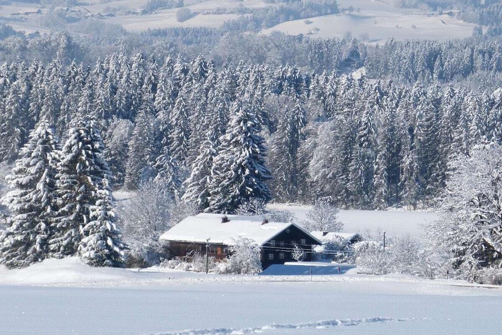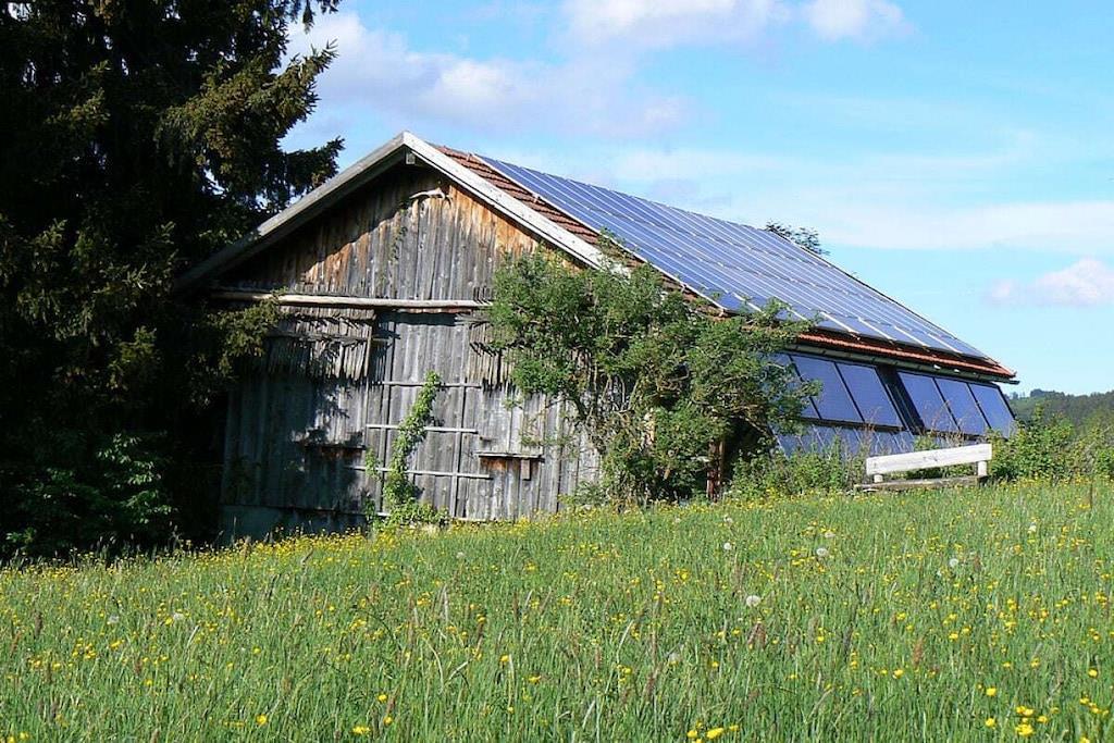Farm in the Oberallgäu with a little eco-house, old trees and a pond; adjacent to the EU nature reserve with lake. Sole occupancy. Wellness area with spring water.