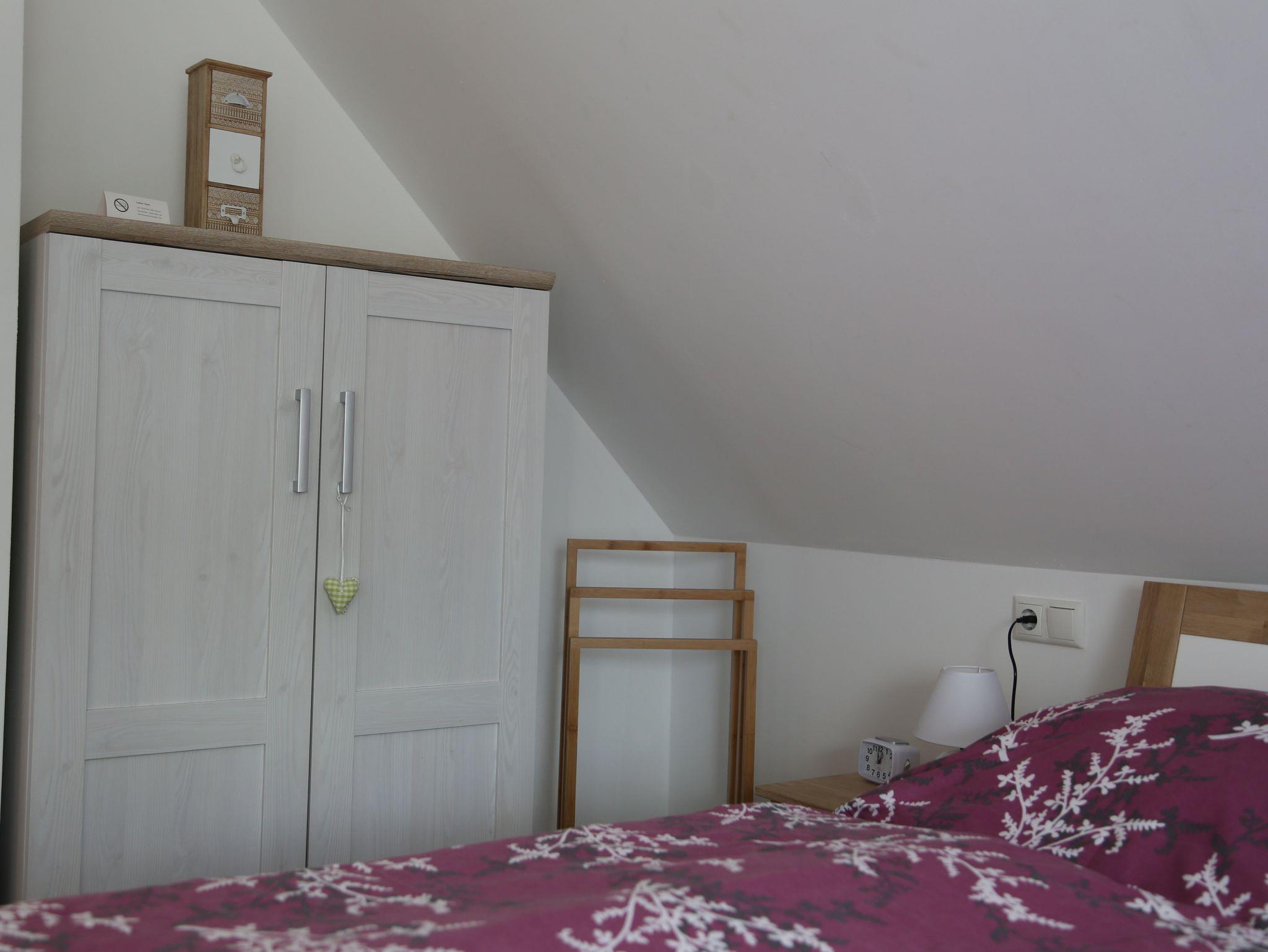 Die Ferienwohnung wurde im Februar 2018 neu renoviert und besitzt einen separaten Eingang. Im Obergeschoss befinden sich zwei Schlafzimmer, das Bad und eine Sitzgelegenheit. In den beiden Schlafzimmern, mit Zugang zum Balkon, ist jeweils ein Doppelbett. Im Untergeschoss befindet sich das Wohnzimmer, die Küche, ein separates WC und ein Abstellraum. Im Wohnzimmer gibt es ein ausziehbares Sofa und einen Fernseher. Die Küche ist voll ausgestattet mit Kühlschrank, Spülmaschine, Ceranfeld mit Backofen, Mikrowelle, Kaffeemaschine, Wasserkocher und Toaster. In der Ferienwohnung können in den zwei Schlafzimmer und auf dem ausziehbaren Sofa bis zu sechs Personen übernachten. Stellplätze für Autos sind vorhanden. Bettwäsche und Handtücher sind im Preis inbegriffen. Die Ferienwohnung ist eine Nichtraucherwohnung.