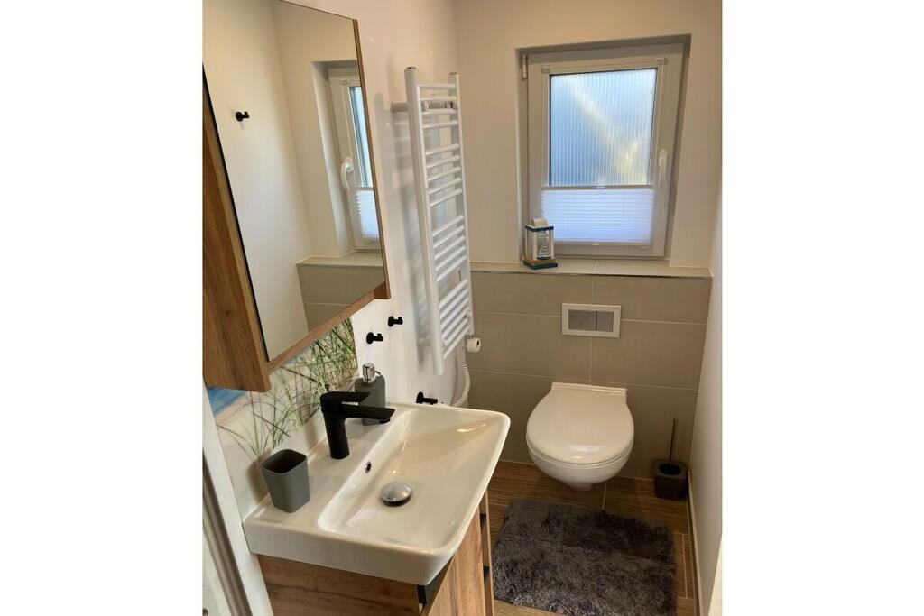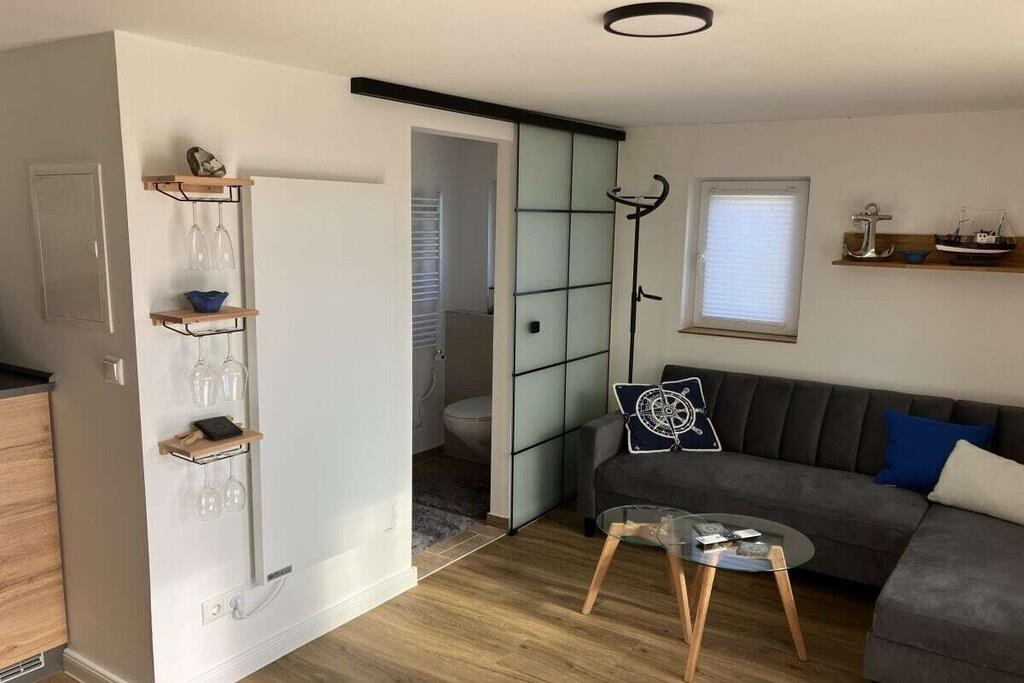 Nur 400 m zum Tremter Naturstrand! Der komplett neue 1- Zimmer-Bungalow "Hühnergott" wurde bis 9/24 grundsaniert, bis auf die Mauern ist alles erneuert worden. Das Tiny-Haus mit Echtholz-Verkleidung und einer grosszügigen Veranda aus Lärche ist nach Westen ausgerichtet und hat eine gesamt-Wohnfläche von insgesamt 32 m2, davon ca 25 m2 im Innenbereich und eine grosszügige überdachte Veranda von 15 m2 Nutzfläche (zu 1/2 angerechnet). Die Massivholz-Veranda ist windgeschützt, möbliert und rechts und links mit beweglichen Holzjalousien ausgestattet. Ein eigener Gartenbereich von ca. 50m2 steht zur Verfügung und ein Parkplatz befindet sich direkt neben dem Gebäude. Der Bungalow befindet sich auf unserem privaten Grundstück (3400 m2) mit einem 2-Familienhaus, in dem wir wohnen und sich noch eine Ferienwohnung befindet. Das Grundstück ist komplett sicher auf 1,60 eingezäunt. Alle Möbel und Einrichtung etc ist neu, die Wände und das Dach sind gedämmt, die Fenster sind 3-fach verglast; die Vermietung startete im September 2024. Der Fernseher ist drehbar und vom Bett, Sofa oder Küche aus zu nutzen, je nach Wunsch. Alle Fenster haben ein Plissee und es gibt 2x Fenster mit Fliegengitter. Die Küche lässt keine Wünsche offen und ist mit Geschirr, Töpfen, Besteck, Kaffeemaschine, Toaster, Eierkocher, Wasserkocher, Kühlschrank, Kochfeld und einer Heissluft-Fritteuse uvm. gut ausgestattet. Am Doppel-Bett (1,60) aus massivem Eichenholz (mit neuer Matratze und Lattenrost) gibt es eine Echtholz-Lärchenvertäfelung für ein gutes Schlaf-Klima. Das Bad ist neu gefliest und mit einer 90cm Dusche komfortabel eingerichtet. Wir wohnen auf dem Grundstück und stehen Ihnen bei Fragen oder Tips gern zur Verfügung. Zu den Kosten: - Ein Hund bis 15 KG darf gerne hier wohnen für 5,-/Nacht. - Die Heizung ist elektrisch (Infrarot- und Konvektorheizungen ohne Gebläse, im Bad in Form eines Handtuchheizkörpers) - im Sommer sind die Stromkosten ca. 1-3 Euro pro Tag, bei niedrigeren Temperaturen ist mit Stromkosten in Höhe von ca. 4-8 Euro pro Tag zu rechnen. Der Strom wird am Ende des Aufenthalts mit der Kaution (100,-) verrechnet, ein eigener Zähler befindet sich im Bungalow. 0,35/kwh Strom. - Verbrauchskosten: Wasser inklusive, Strom extra. - Wlan, Sat-TV und Parkplatz inklusive. - Die Endreinigungsgebühr von 50,- (professionelle Reinigungsfirma) ist obligatorisch - Bettwäsche und Handtücher stellen wir inklusive zur Verfügung (bezogene Betten). Bei Aufenthalten ab 2 Wochen tauschen wir die Bettwäsche/Handtücher auf Wunsch kostenfrei (wir stellen Ihnen ein Korb frischer Wäsche zum Tauschen hin). - keine Kurtaxe. Alle Preise inklusive 7% Mwst. Ein rundum gemütliches Tiny-Haus wartet auf Sie! Wir vermieten auf diesem Portal auch eine 95 m2 Maisonette-Ferienwohnung am gleichen Standort, für bis 4 Personen und bis zu 3 Hunde, Inserat Nr 457600