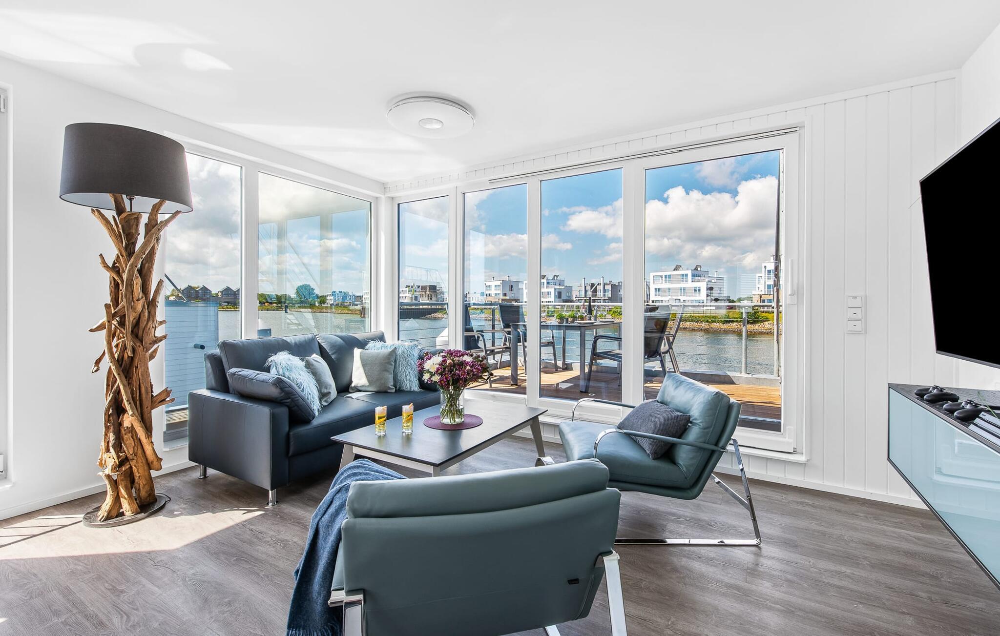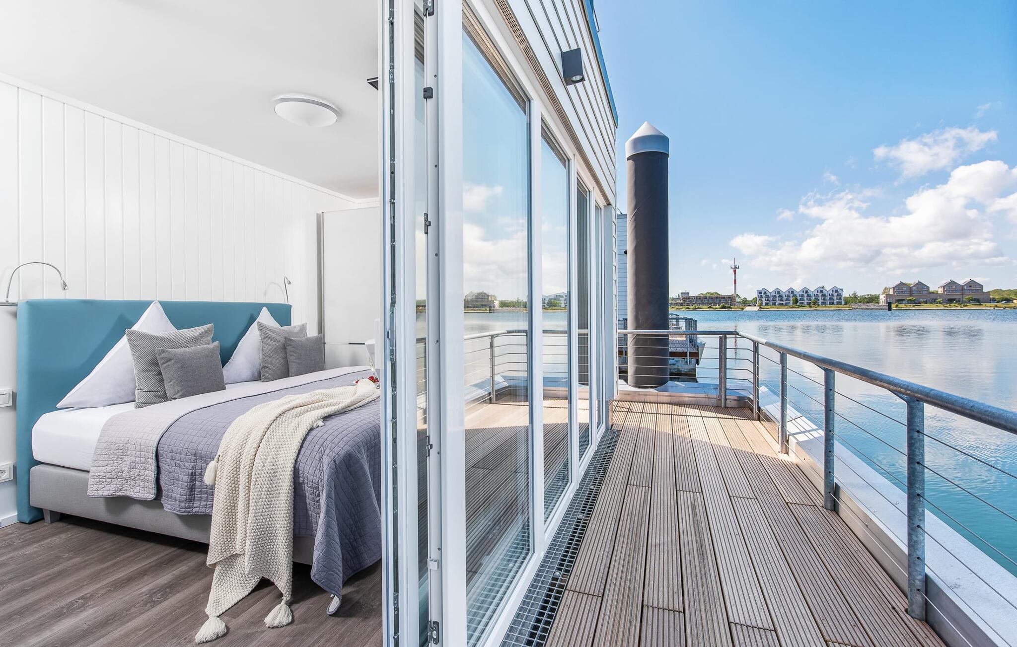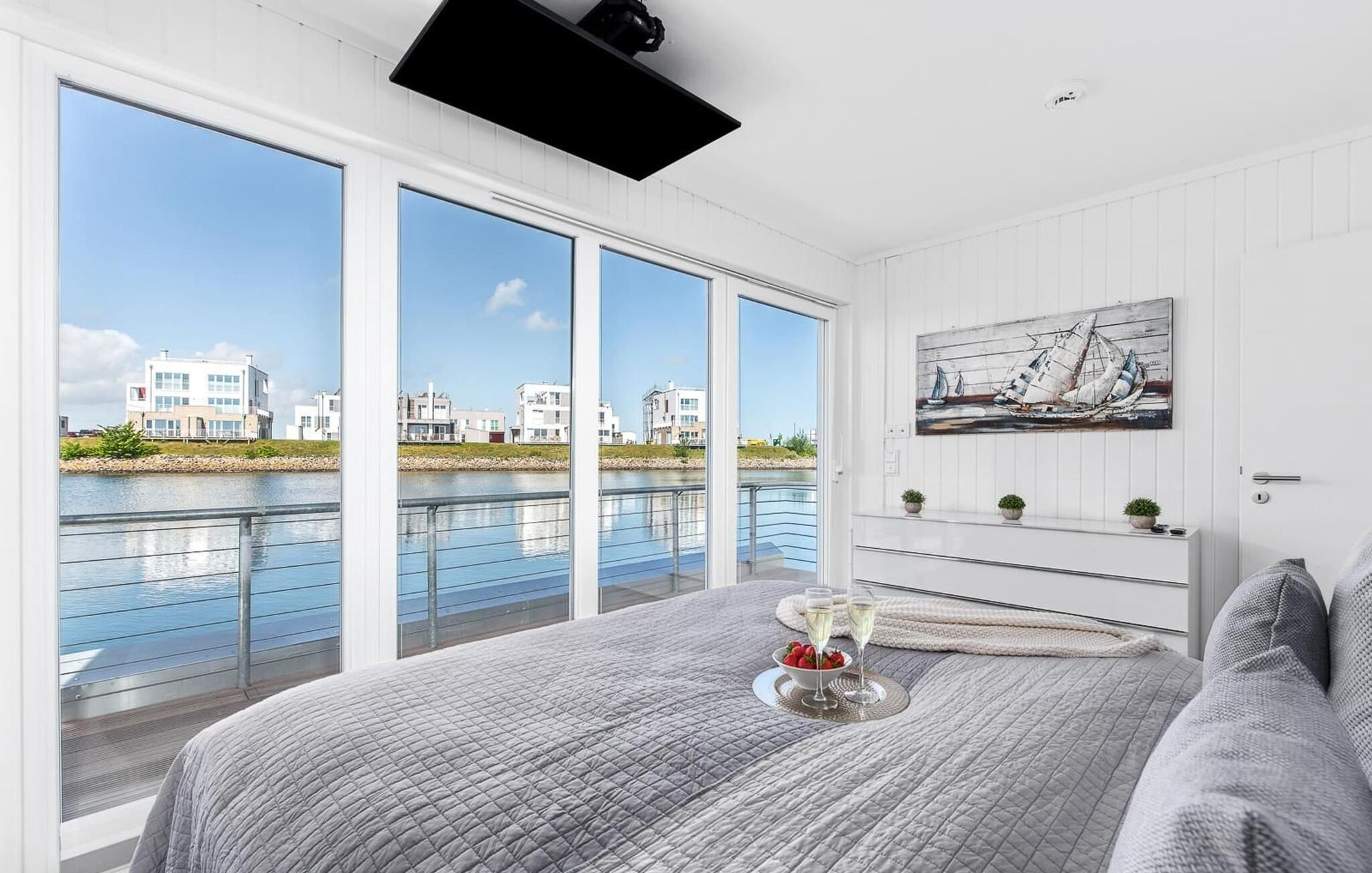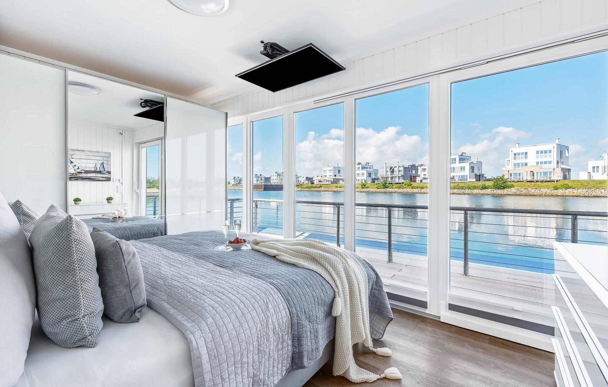 Vand så langt øjet rækker. Det betagende landskab kan nydes gennem gulv-til-loft panoramavinduer, og tagterrassen byder på en spektakulær 360-graders udsigt over Slien, Østersøen og marinaen. Østersøen er kun en badestige væk, og sandstranden i Baltic Sea Resort kan nås til fods. I den mørke årstid giver gulvvarme og sauna hyggelig komfort, da wellness-programmet ombord er et must. Udover havnebiografen sørger Smart TV med hjemmeunderholdningsprogram og en PlayStation 4 for underholdning.