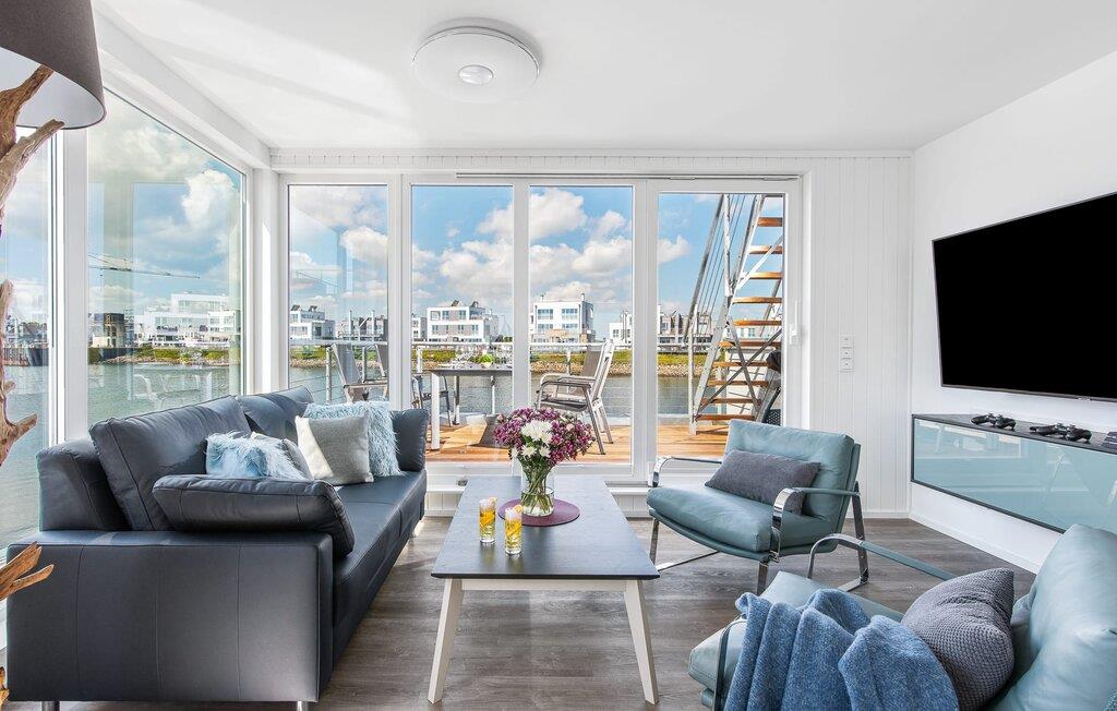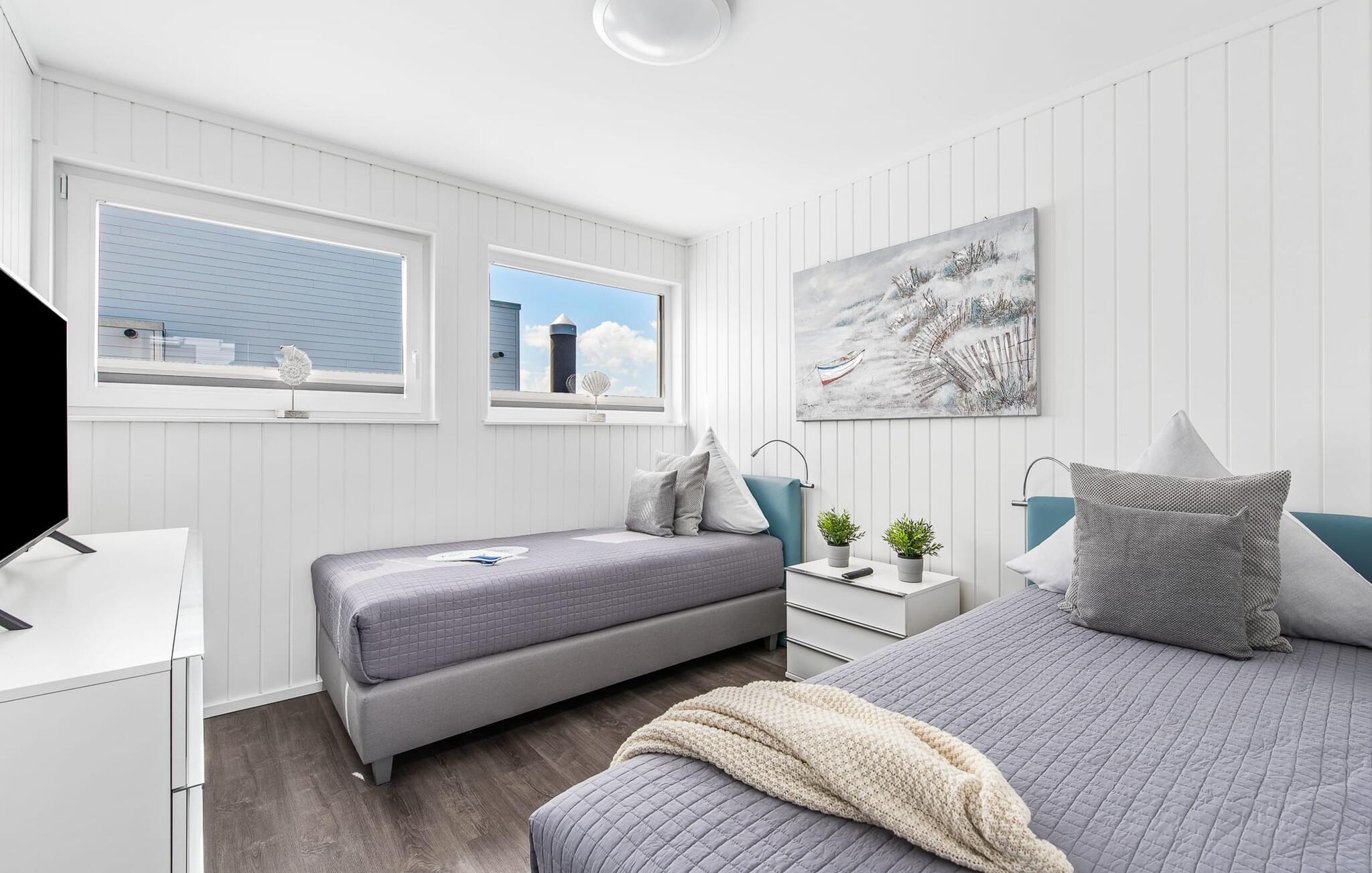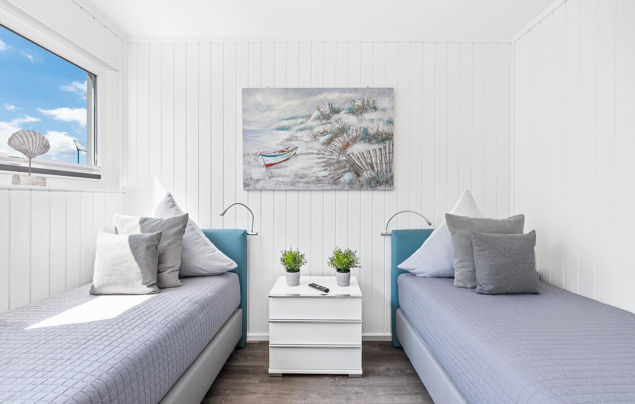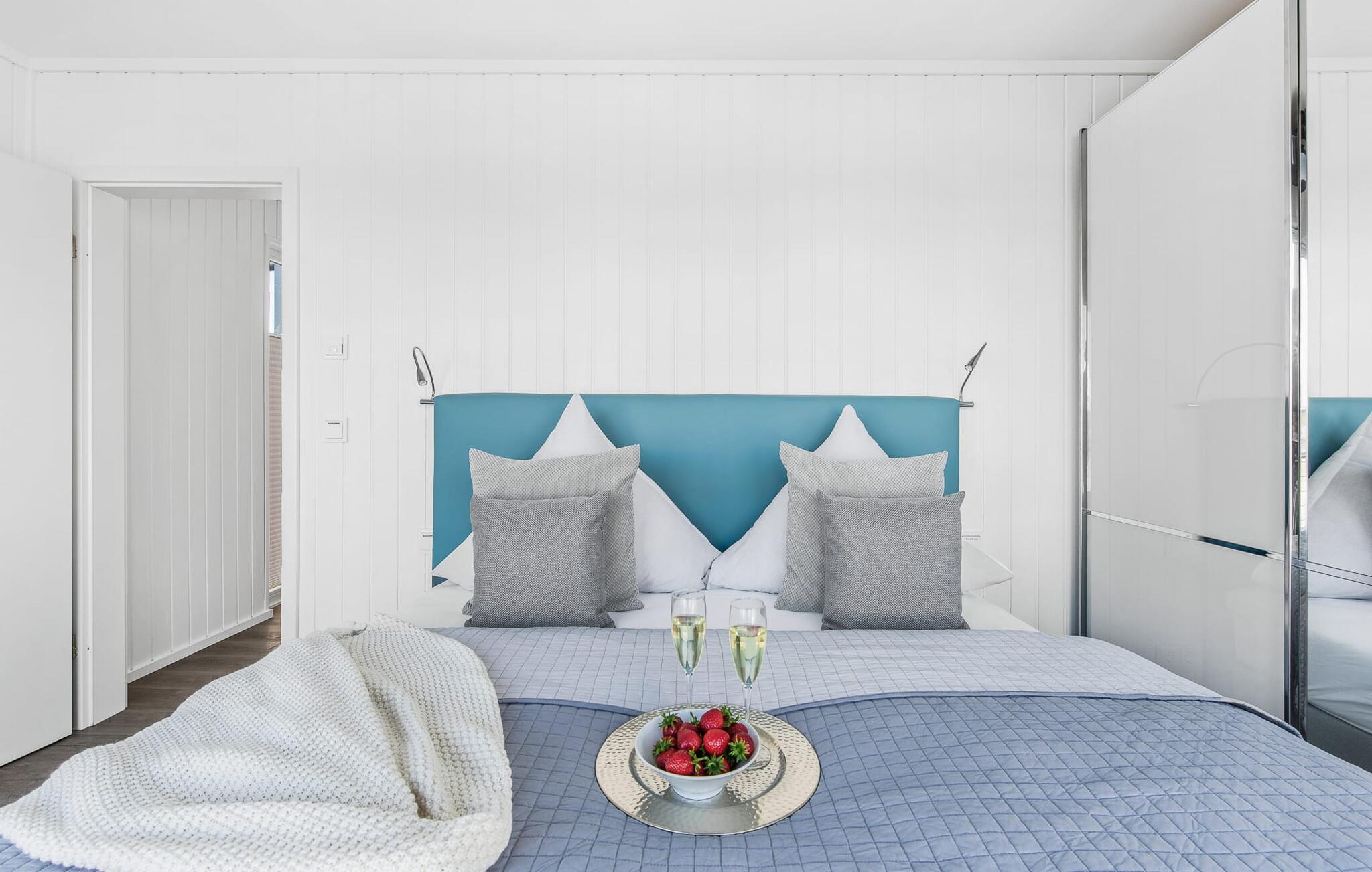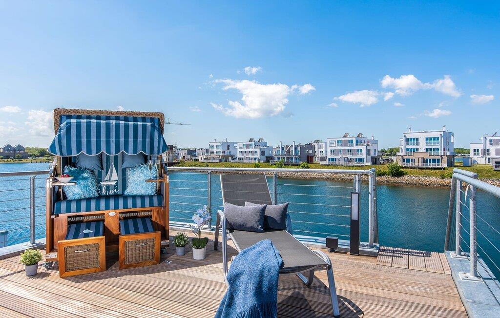 Vand så langt øjet rækker. Det betagende landskab kan nydes gennem gulv-til-loft panoramavinduer, og tagterrassen byder på en spektakulær 360-graders udsigt over Slien, Østersøen og marinaen. Østersøen er kun en badestige væk, og sandstranden i Baltic Sea Resort kan nås til fods. I den mørke årstid giver gulvvarme og sauna hyggelig komfort, da wellness-programmet ombord er et must. Udover havnebiografen sørger Smart TV med hjemmeunderholdningsprogram og en PlayStation 4 for underholdning.