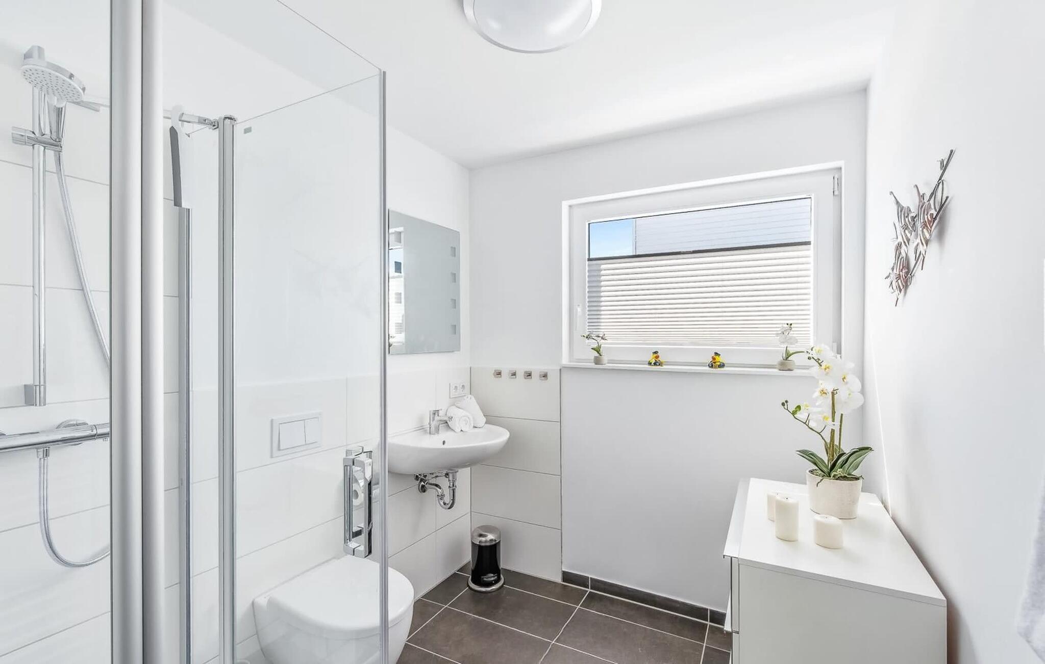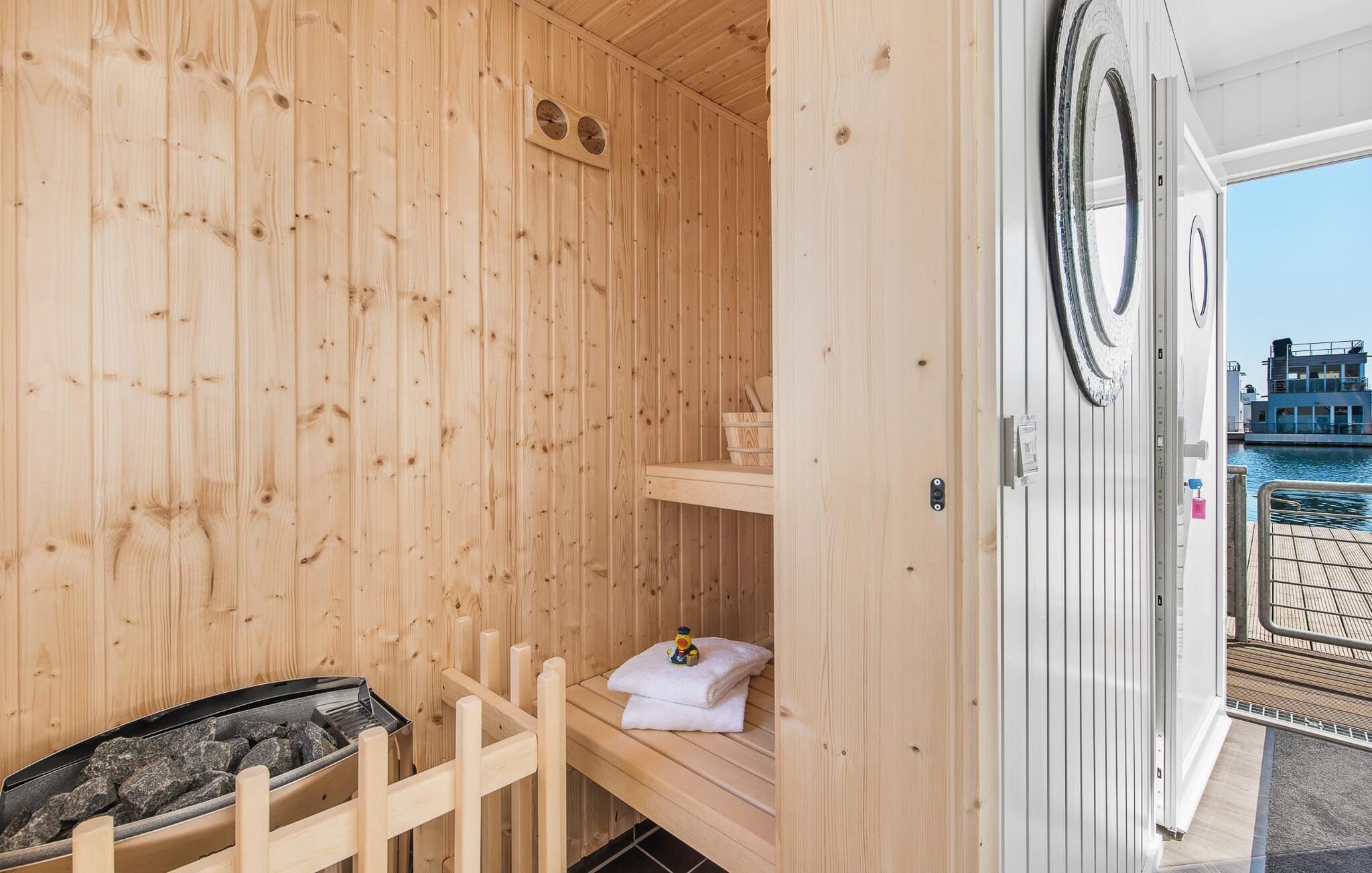 Når I tager en sauna eller børster tænder, kan I selvfølgelig også se havet og svanerne svømme forbi.