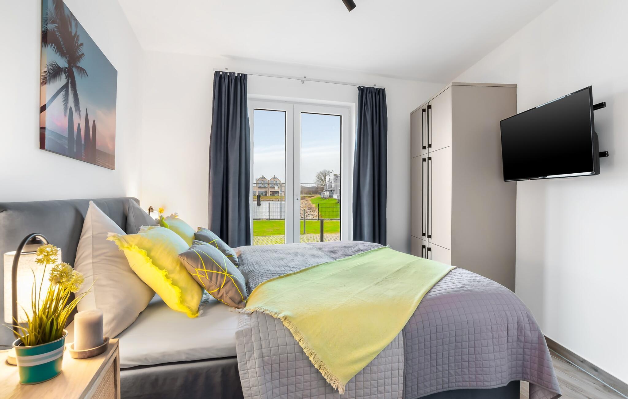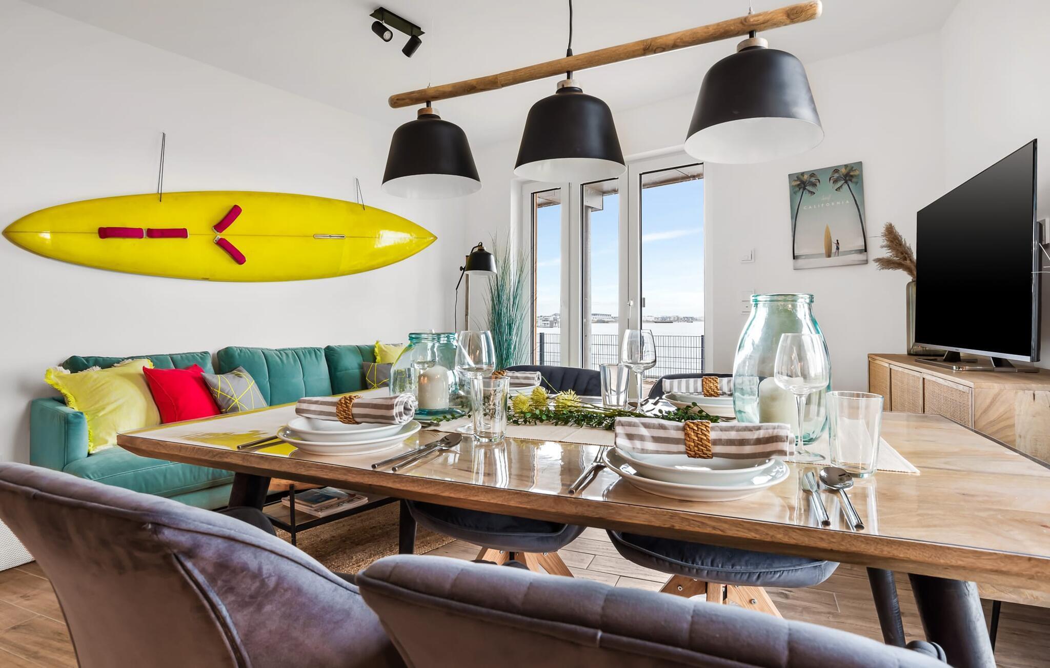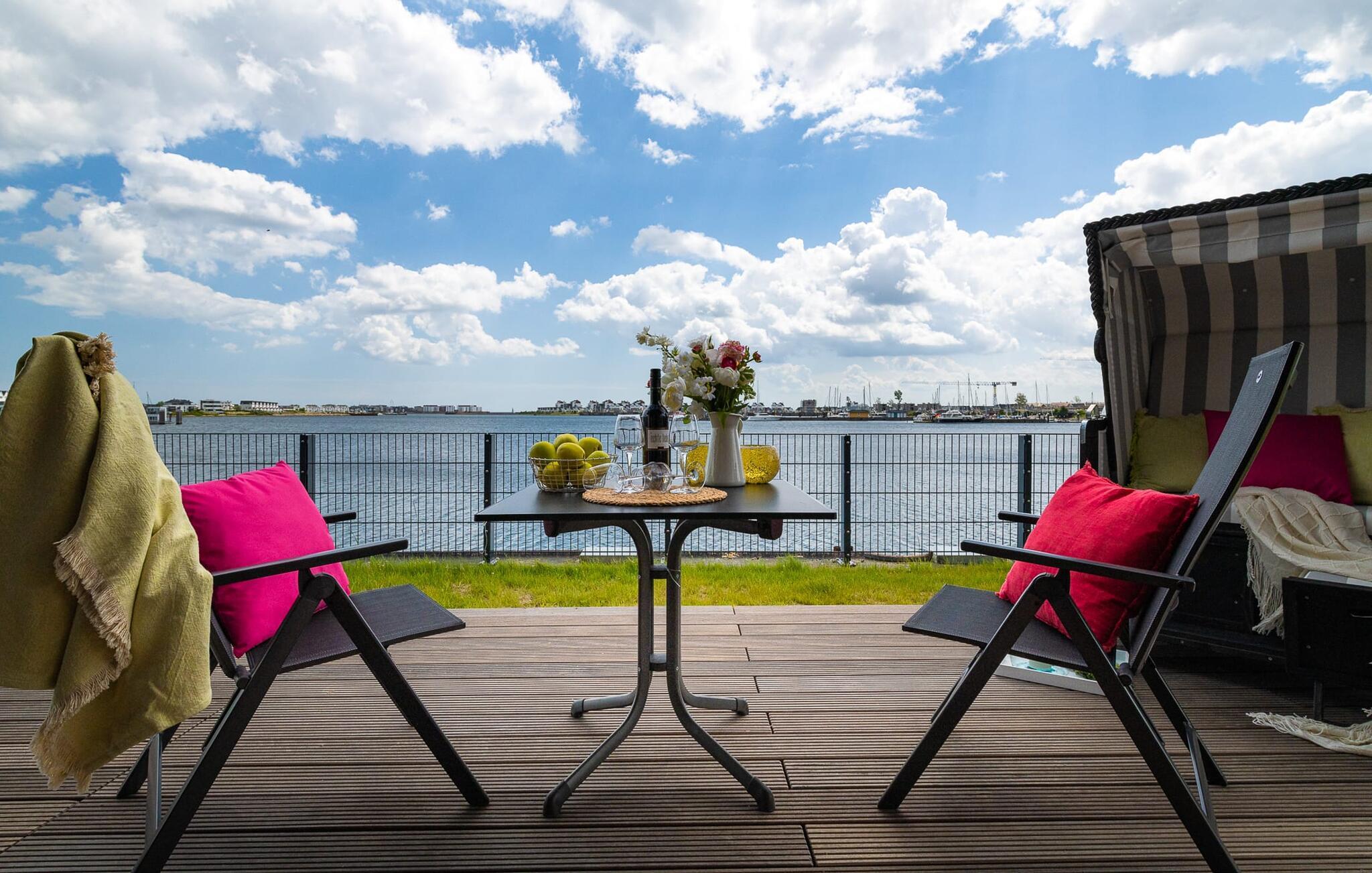 Beliggende direkte på havnebassinet i feriestedet Olpenitz ved Østersøen, med en uhindret udsigt over havnen og ud over Østersøen, inviterer SURFERS LOUNGE jer til at tage på et lokalt krydstogt. Den populære havnepromenade med sine små butikker ligger i gåafstand til slentre og slentre og giver mulighed for at forkæle sig selv med souvenirs og smukke ting. Den åbne stue/spisestue med integreret køkken oversvømmes med lys takket være vinduet fra gulv til loft, og at se de daglige solopgange bliver en uforglemmelig ferieoplevelse. Herfra har gæsten udgang til den store terrasse. Udsigten over havnen, vandet og skibe og den fjerne Østersø giver jer følelsen af at være kaptajn på en lang rejse for en stund. Terrassen strækker sig i en tilspidset form rundt om hele lejligheden og forstærker følelsen af at være på dækket. Stilfulde udendørsmøbler er tilgængelige for at spise eller blot slappe af i denne unikke atmosfære. Opholdsområdet er domineret af et behageligt opholdsområde med fjernsyn og pejs, som formår at forvandle selv uvorne dage til hyggedage. Møblerne i SURFERS LOUNGE er nordisk hyggelige og er understreget med friske BoHo-accenter. Det fuldt udstyrede tekøkken lader intet tilbage at ønske og giver jer lyst til at tilberede lækkerier sammen og derefter nyde dem sammen. Og udsigten til havnen er der altid. To smagfuldt indrettede værelser af høj kvalitet er tilgængelige for passagererne. Det store soveværelse byder på en dobbeltseng. Det andet soveværelse er indrettet med to enkeltsenge og et fjernsyn. En afslappende søvn er garanteret, og de smukke drømme kommer naturligt. Et andet højdepunkt er brusebadet. Ud over alt det nyttige, venter en bruser på gulvniveau og en infrarød kabine på at forkæle gæsterne. Det være sig efter en dag på stormfuldt hav eller en lang dag på stranden. En parkeringsplads ved huset er tilgængelig for jer. Vores favoritsted: start dagen med en solid morgenmad på terrassen med udsigt over havnen og solopgangen... Bemærk venligst: OstseeResort Olpenitz er meget populært, og der bygges fortsat i parken. Ikke desto mindre kan I se frem til en 5-stjernet standard og et førsteklasses ophold. Byggeaktiviteterne kommer ikke til at forstyrre jer på ferien, og derfor gives der ikke yderligere afslag i prisen.