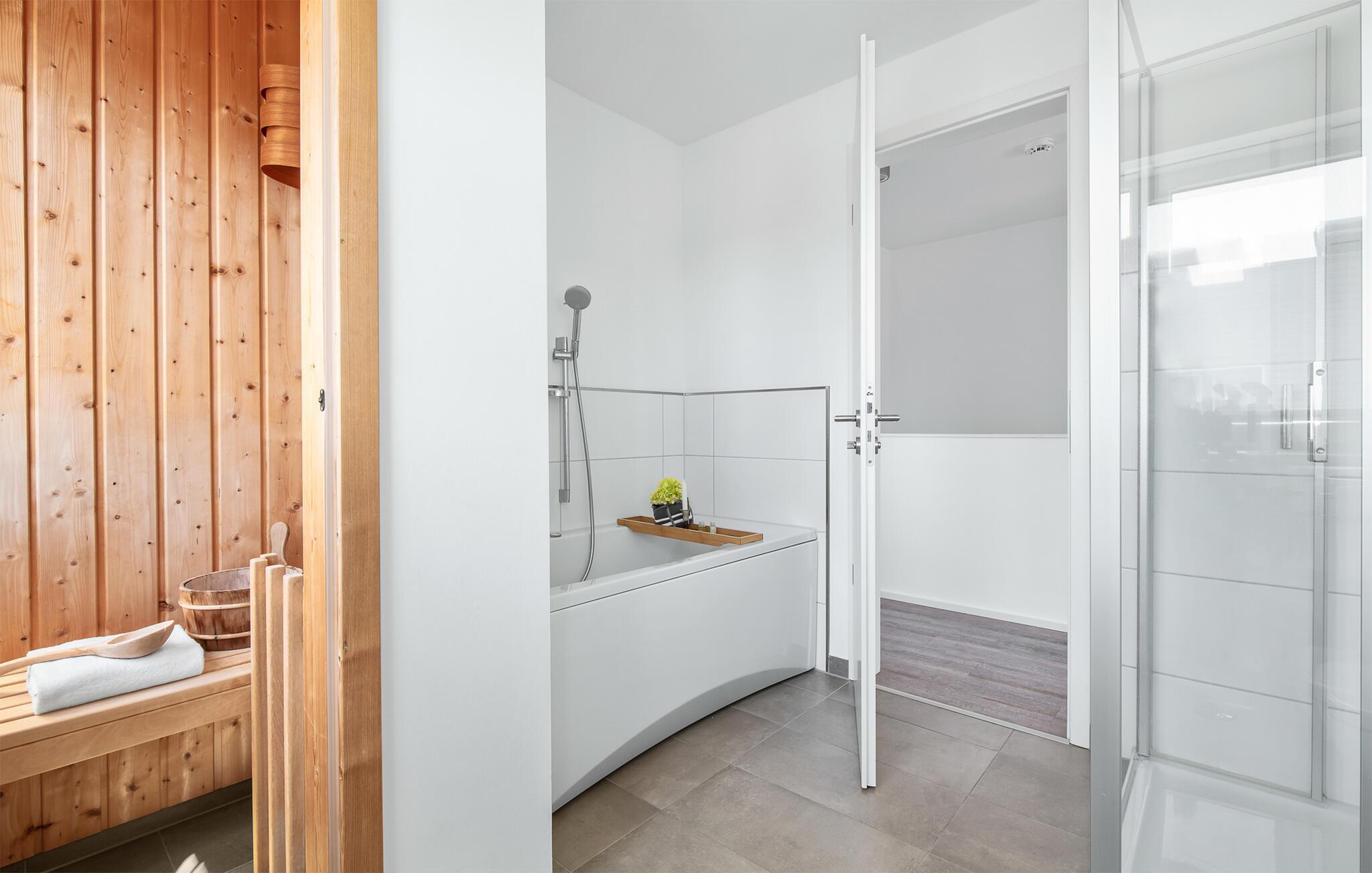 Også på dette niveau er badeværelset med udsigt over havnen. Finsk sauna med udsigt til vandet og spabad får spahjerterne til at banke hurtigere.