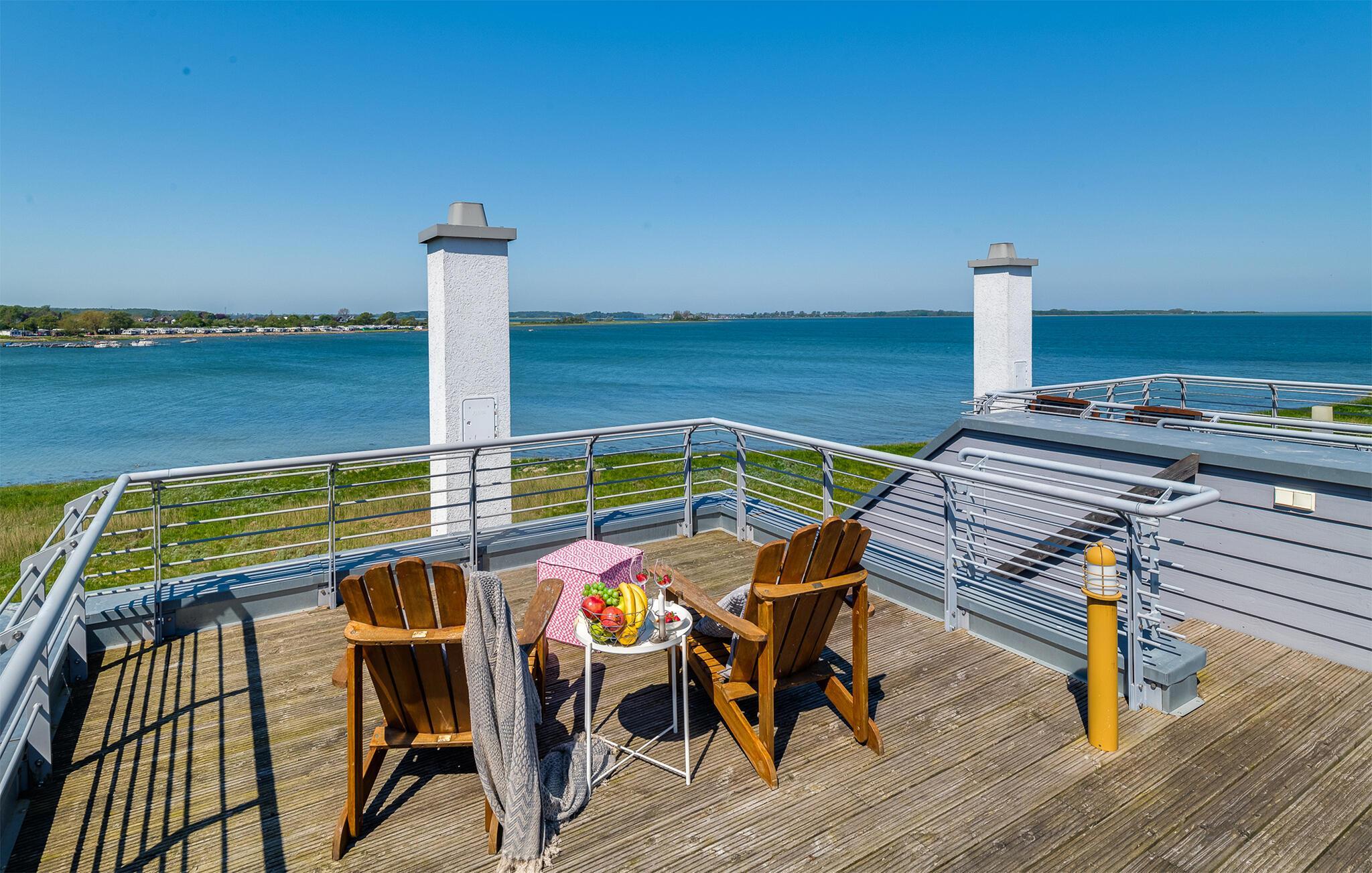 Højdepunktet ved dette feriehus er tagterrassen med udsigt til vandet hele vejen rundt. Grinding eller havnebiograf Her er garanteret en fænomenal udsigt med sol hele dagen.