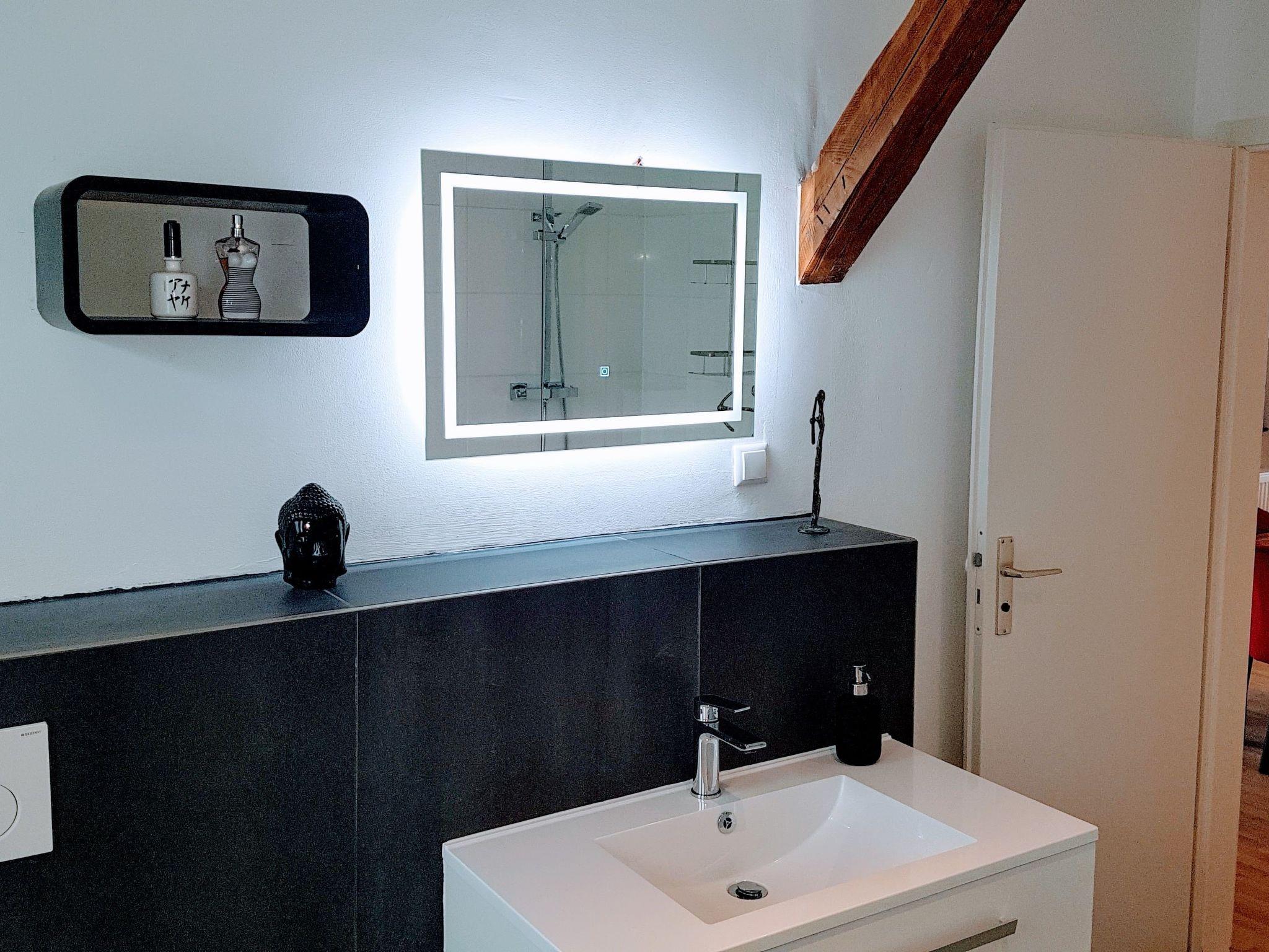 The luxury penthouse is located in the middle of green Syke, only a few minutes away from the railway station, centrally but still quiet, a car park is available on the property and the connection to Bremen is possible every 30 minutes by train.
