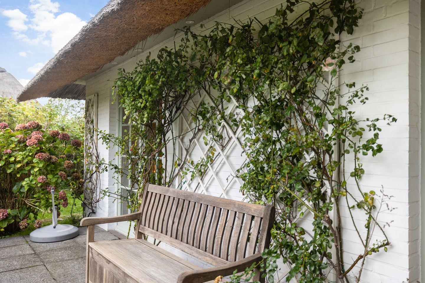 Sie haben durch den raffinierten Grundriss genügend Rückzugsmöglichkeiten, so dass Sie auch in Ruhe ein Buch aus Ihrer eigenen Bibliothek lesen und dabei den Blick aus allen Zimmern in den von bepflanzten Friesenwällen umgebenen Garten des freistehenden Hauses genießen können. Der von der ruhigen Straße aus uneinsehbare Garten mit großem Rasen, mächtigen Hortensien, gepflegten Kletterrosen und altem Baumbestand steht Ihnen allein zur exklusiven Nutzung zur Verfügung. Vier Sonnenliegen sind neben diversem Teakholzmobiliar auf den beiden Terrassen vorhanden.