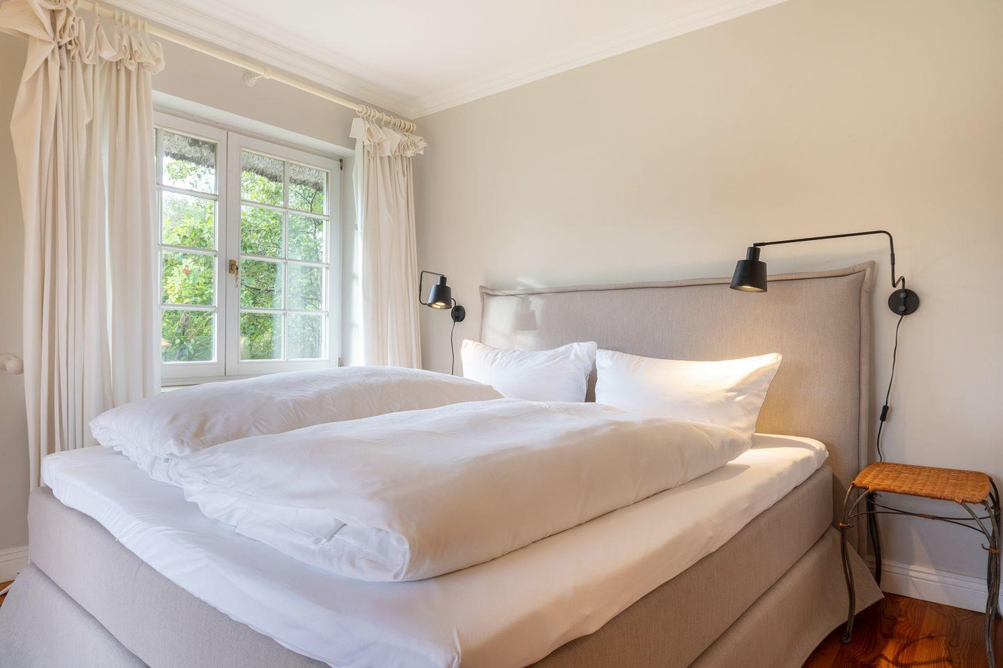 Die beiden Schlafzimmer mit je Boxspringbetten in Hotelqualität (180x200cm) und den großzügigen Einbauschränken geben Ihnen mehr als genug Stauraum für Ihre Garderobe und verfügen je über internetfähige Flachbildfernseher und moderne Leselampen.