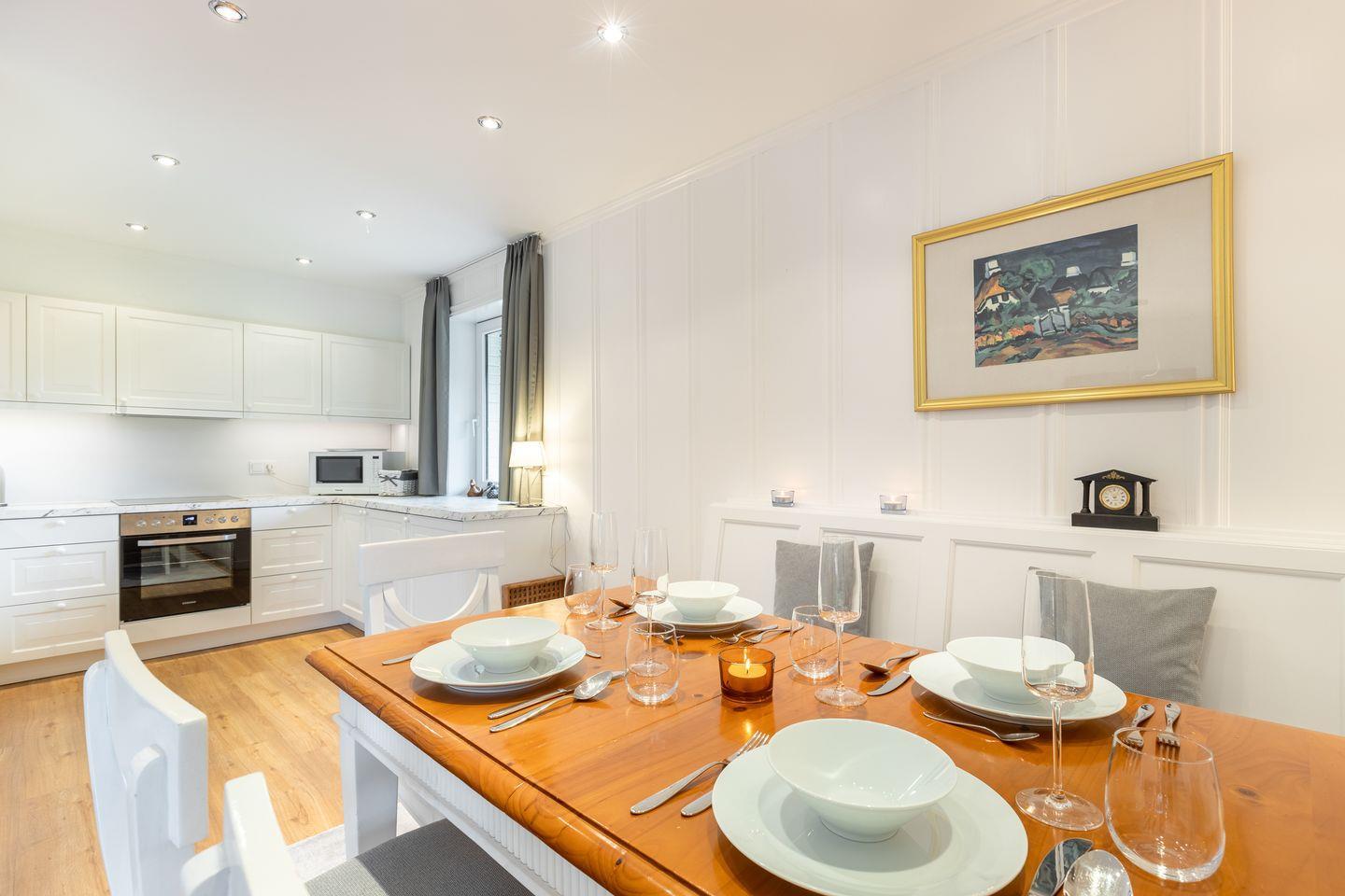 einladender, heller Essplatz mit angrenzender, perfekter Landhausküche, GS