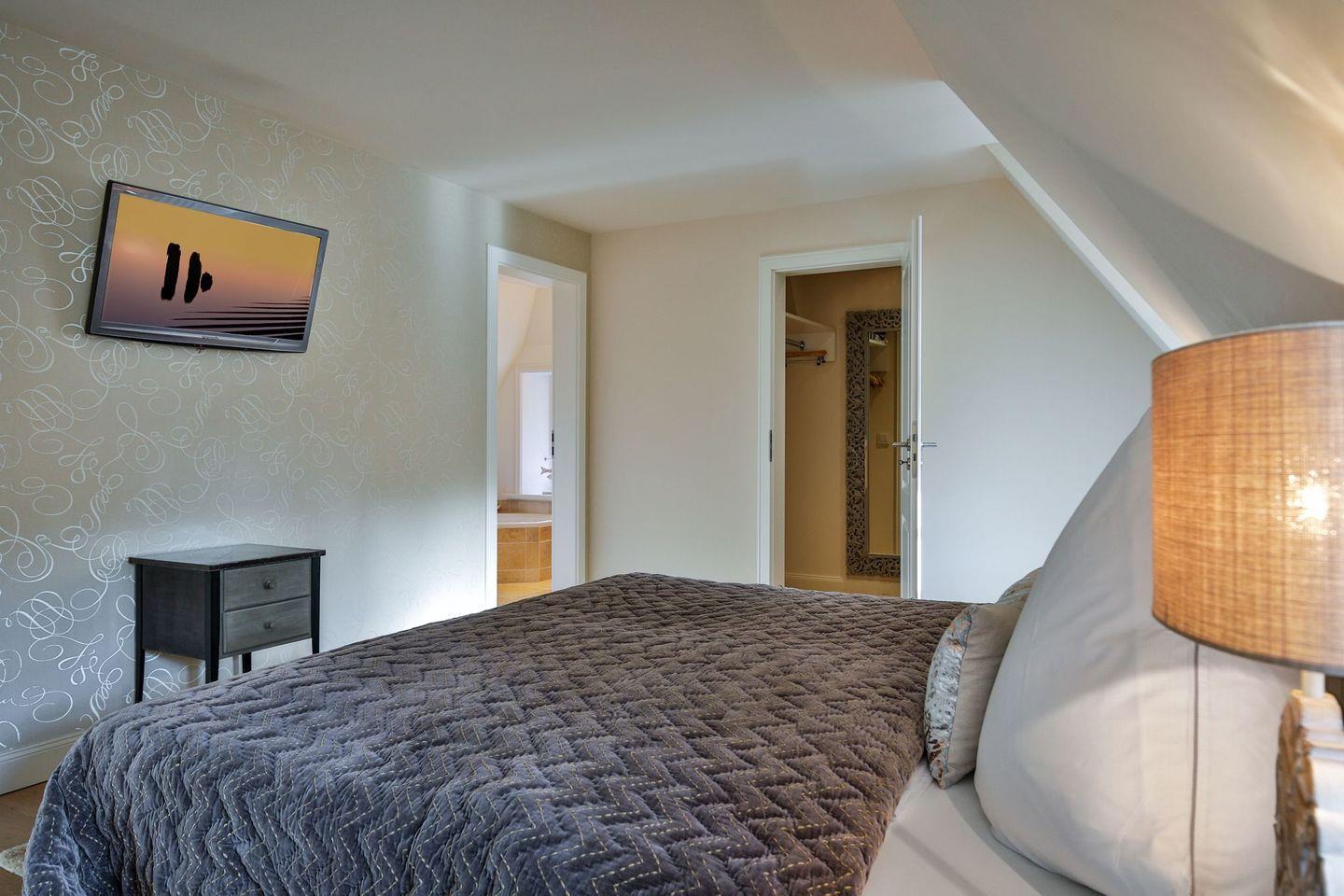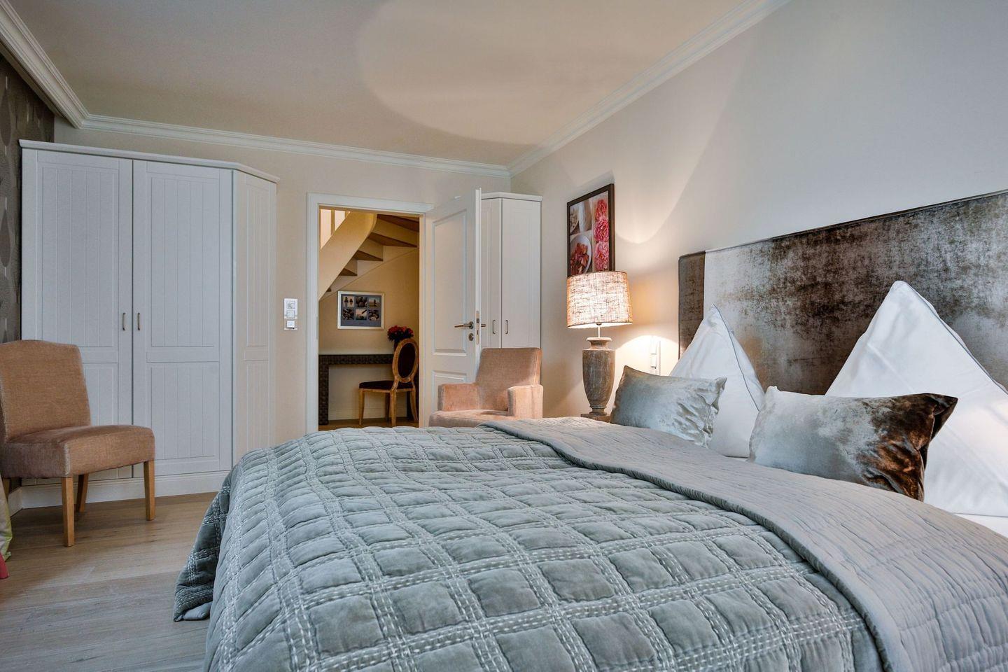 Schlafen 1: geräumiger Schlafraum mit Doppelbett, begehbarem Kleiderschrank und TV