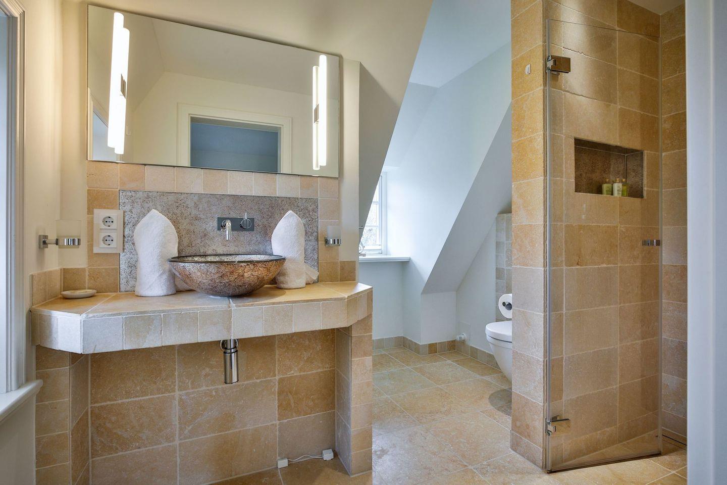 Das Haus ist hochwertig und exklusiv ausgestattet und von einem großzügigen Garten umgeben. Selbstverständlich ist dieses Haus mit 5 Sternen des DTV klassifiziert. Diese mit Reet gedeckte Doppelhaushälfte mit Einzelhaus-Charakter liegt fußläufig zur Keitumer St. Severin und in unmittelbarer Nähe zum Wattenmeer. Das helle und großzügige Objekt über drei Ebenen (EG, OG, Souterrain) ist ca. 260 m² groß und bietet zwei bis acht Personen ausreichend Platz. Das geräumige und hochwertige Haus liegt auf einem insgesamt 1.000 m² Grundstück südlich der St. Severin Kirche in Keitum. Das exklusive Doppelhaus wurde mit aufgearbeiteten Ziegelsteinen von 1886 erbaut. Die Räumlichkeiten im Erdgeschoß sind mit großflächigen sehr hochwertigen Natur Limestone ausgelegt, im Obergeschoß liegen Echtholzeichendielen, das gesamt Souterrain und die Bäder sind ebenfalls mit Limestone verlegt. Im Erdgeschoss und im Souterrain ist jeweils eine Fussbodenerwärmung integriert, zusätzlich sind auch Heizkonvektoren in allen Räumen angebracht. Auf allen Ebenen finden Sie hochwertige Tischlereinbauten. Darüber hinaus bietet das Haus jeglichen Komfort wie Sauna mit Ruheraum, Gaskamin, Flat-TV's ( streamingfähig) mit Soundbar, WLAN (High-Speed Internet), alle Schlafzimmer und Wohnzimmer mit Flachbildschirmen, Alarmanlage, Geschirrspüler, Mikrowelle, Backofen, Kühlschrank, Nespresso Kaffeemaschine, Induktionsherd, Safe, Hauswirtschaftsraum mit Waschmaschine und Trockner und zwei Pkw-Stellplätze. Bademäntel sind für Sie als unser Gast in diesem Domizil kostenfrei. Die Betten sind jeweils 1,80 x 2,00 m mit durchgängiger Matratze. Das Haus ist von einem großzügigen gepflegten Garten mit zwei Terrassen und Friesenwälle umgeben. Das Haus ist ausschließlich für Nichtraucher (auf der Terrasse wäre es erlaubt).