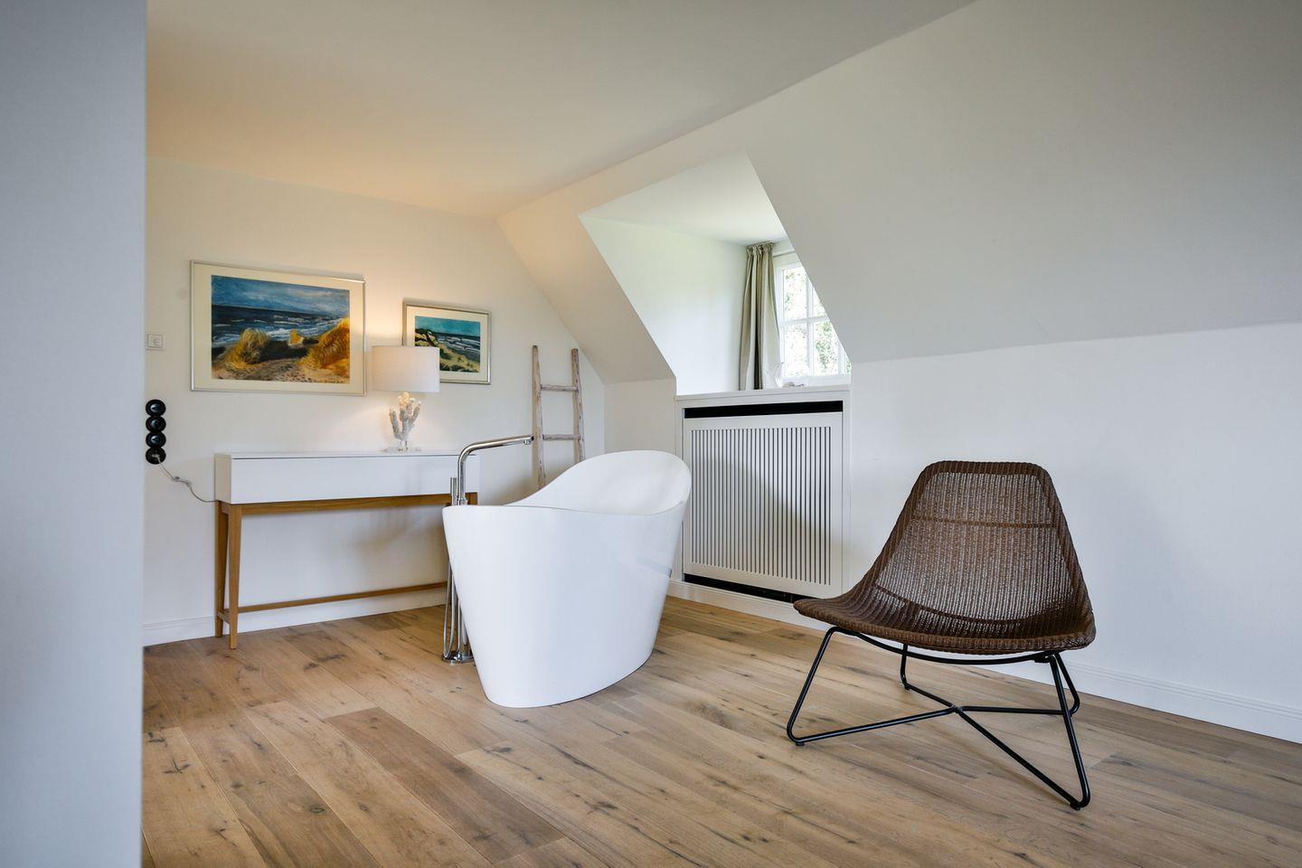 Das reetgedeckte wunderschöne Haus verfügt über einen parkähnlichen Garten zu den Wattwiesen. Die Einrichtung ist hochwertig und geschmackvoll. Das Haus bietet Komfort wie Kamin, Flat-TV, Geschirrspüler, Backofen, Induktionsherd und vieles mehr.