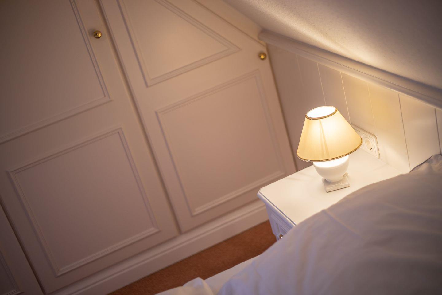 Schlafen 2: Schlafraum mit zwei Einzelbetten unter Schrägen und Einbauschrank