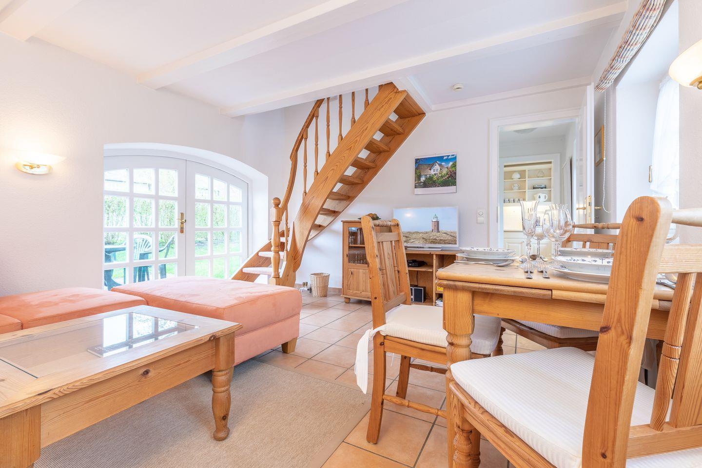 Das reetgedeckte, ca. 75 m², große Haus liegt zum Wattenmeer ca. drei Gehminuten entfernt. Die helle mediterrane Einrichtung ist geprägt durch hochwertige Tischlereinbauten und Terrakotta-Boden. Die Wohnung verfügt über Komfort wie Flat-TV, DVD-Player, W-LAN, Stereoanlage mit CD, Telefon, Geschirrspüler, Backofen und Fußbodenheizung im Erdgeschoß.