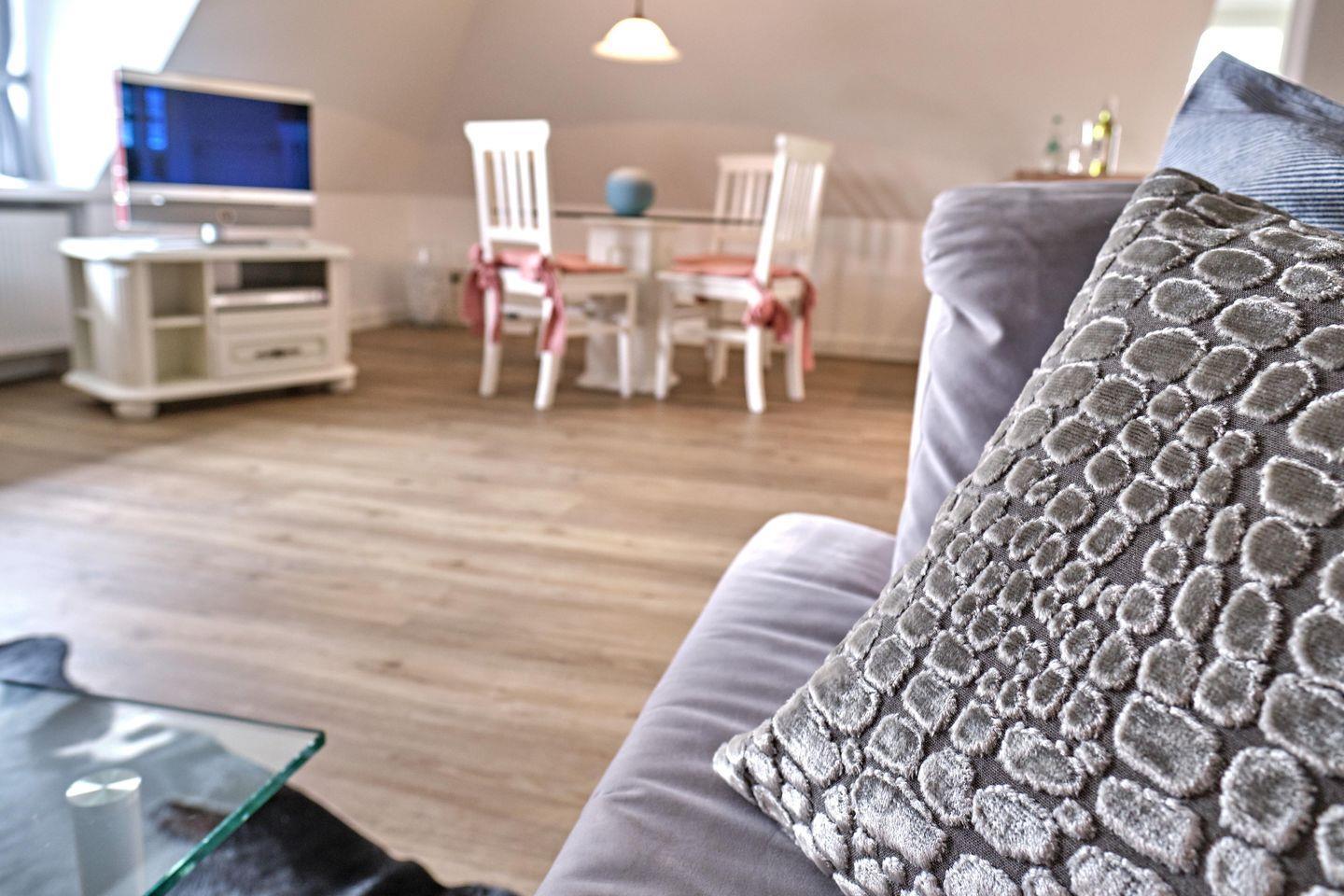 Sie bietet Komfort wie Flat-TV, Backofen, Geschirrspüler und Pkw-Stellplatz. Es steht Ihnen eine Sonnenkuhle mit Strandkorb zur Verfügung ( von ca. April bis Oktober )