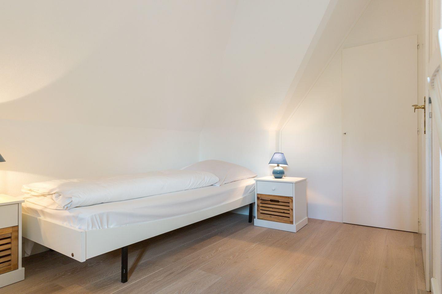 Schlafen 3: Schlafraum mit zwei Einzelbetten (je 90 x 200 cm, ohne Fußteil) und Blick zur Keitumer Kirche