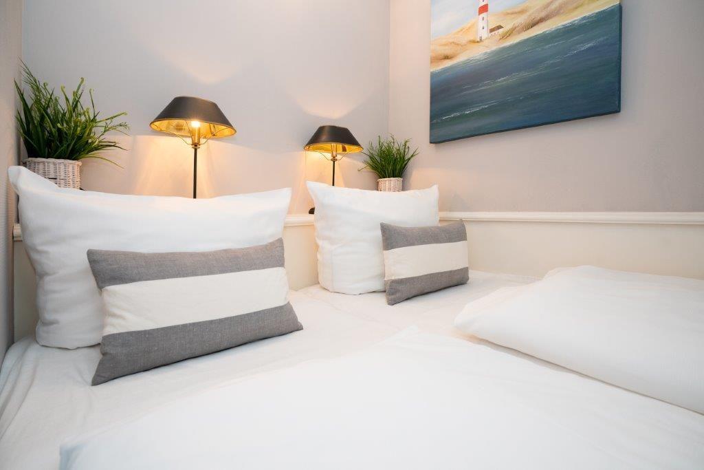Dachgeschoß: 1 Schlafraum mit Doppelbett 160 x 200 cm und 1 Schlafraum mit eingebauten Doppelbett 160 x 200 cm