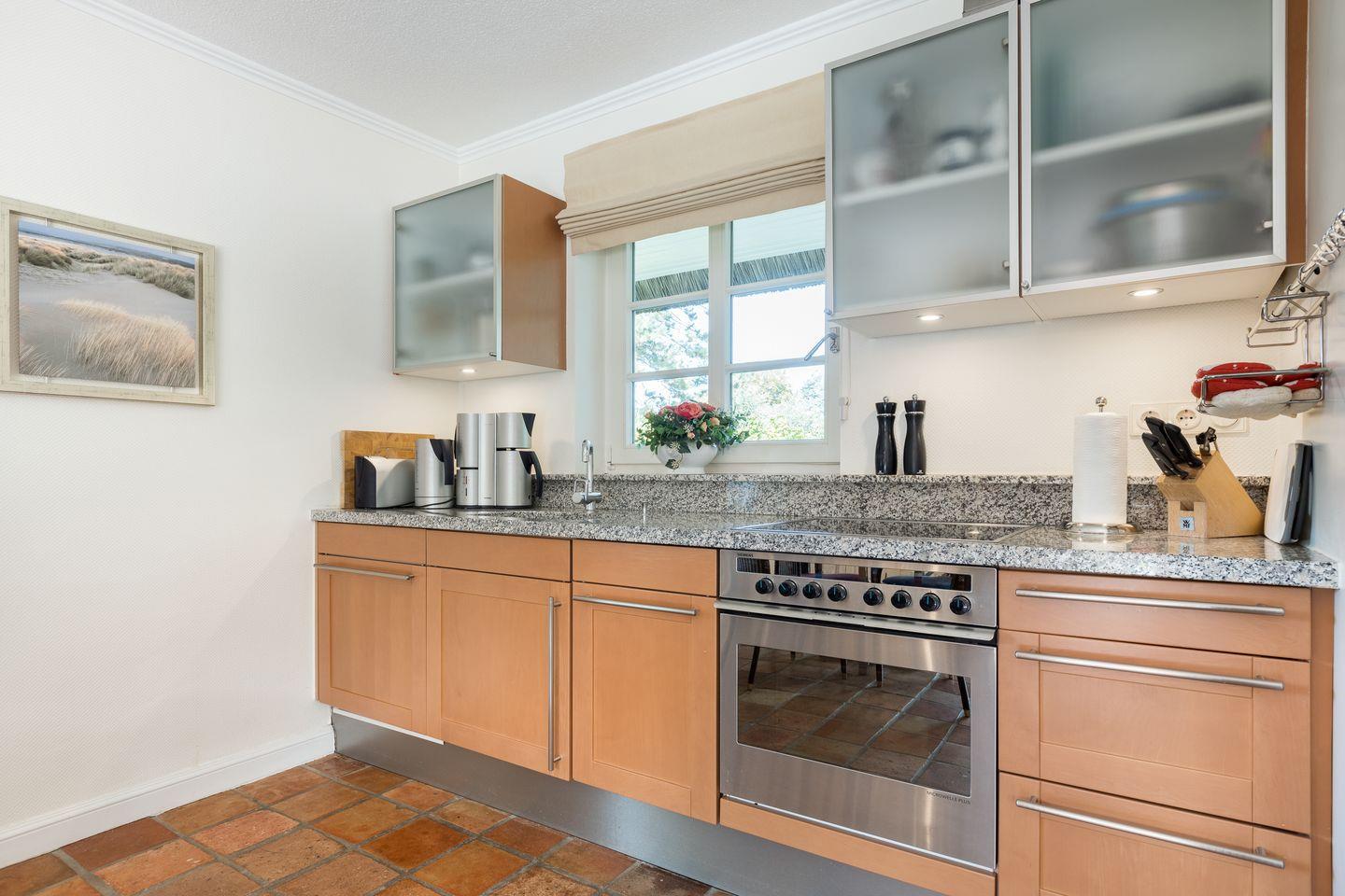 Die sehr geräumige Haushälfte (Erdgeschoß, Obergeschoß und Souterrain) ist ca. 110 m² groß und bietet zwei bis vier Personen ausreichend Platz. Das reetgedeckte Haus mit aufwändigen Tischlerarbeiten liegt mit schönem eingewachsenen Garten im Westteil des Ortes. Das Haus verfügt über Komfort wie Telefon, W-LAN, zwei Flat-TV, DVD-Player, Stereoanlage mit CD, Cerankochfeld, Mikrowellen-Backofen, Geschirrspüler, Waschmaschine und Trockner. Zu dem Haus gehört ein kleines Gartenhaus.