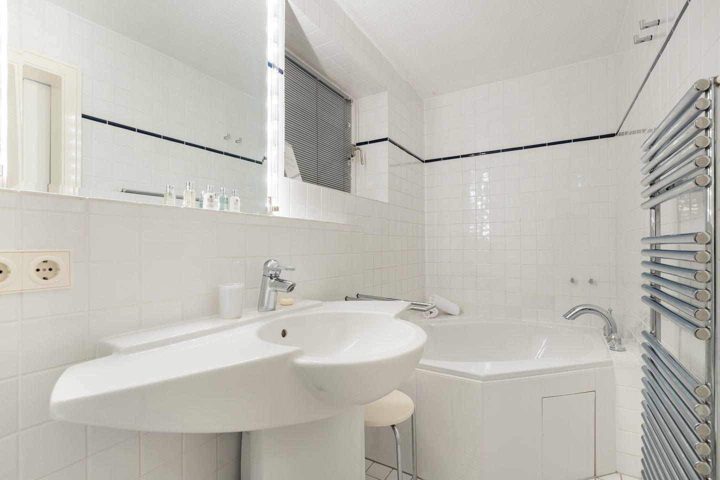 Bad 1: weißes Vollbad mit Duschvorrichtung und elektr. Handtuchwärmer