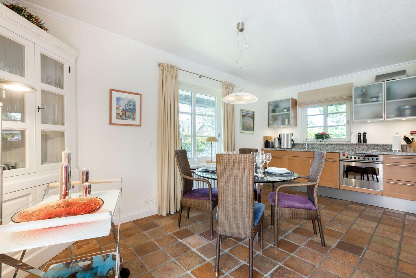 Die sehr geräumige Haushälfte (Erdgeschoß, Obergeschoß und Souterrain) ist ca. 110 m² groß und bietet zwei bis vier Personen ausreichend Platz. Das reetgedeckte Haus mit aufwändigen Tischlerarbeiten liegt mit schönem eingewachsenen Garten im Westteil des Ortes. Das Haus verfügt über Komfort wie Telefon, W-LAN, zwei Flat-TV, DVD-Player, Stereoanlage mit CD, Cerankochfeld, Mikrowellen-Backofen, Geschirrspüler, Waschmaschine und Trockner. Zu dem Haus gehört ein kleines Gartenhaus, in dem Sie z.B. Fahrräder abstellen können. Selbstverständlich haben Sie auch einen Pkw-Stellplatz.