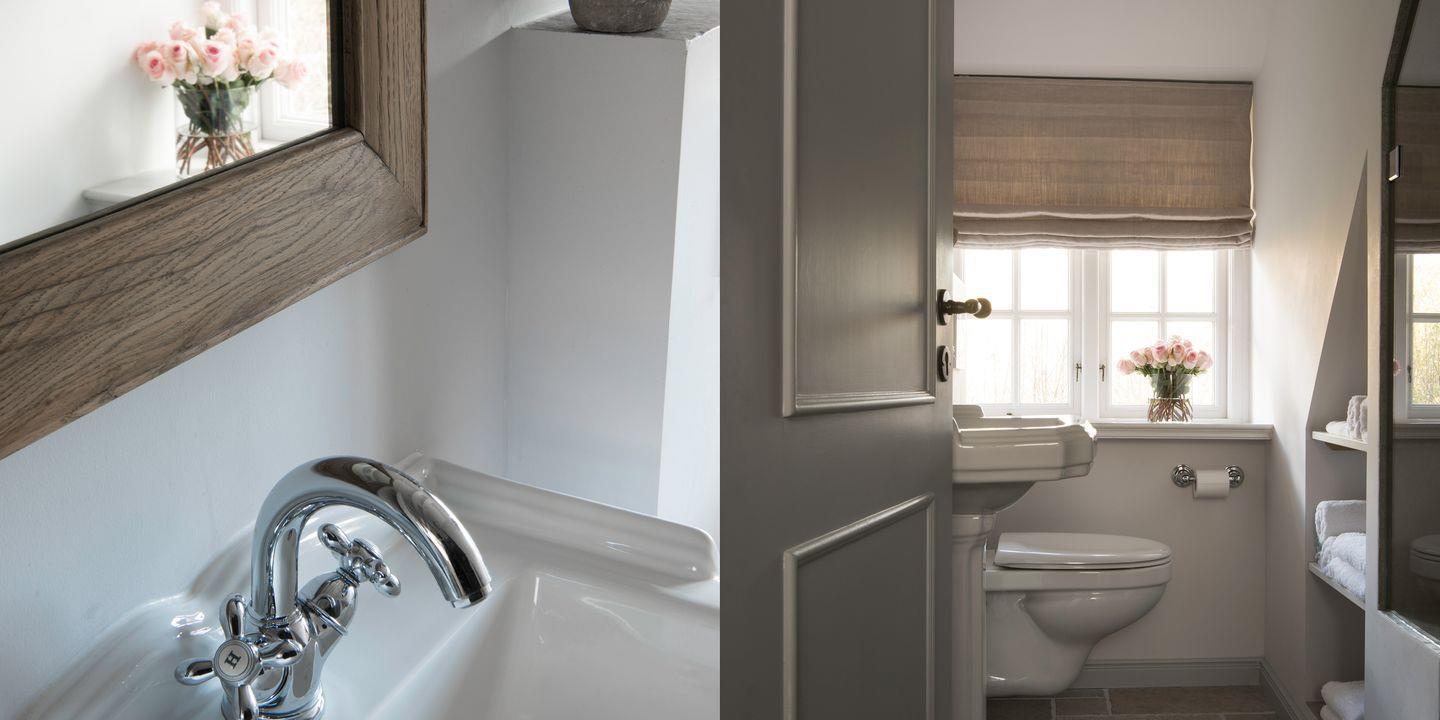 Bad 1: kleines Duschbad mit Regendusche, Einzelwaschtisch und Spiegel