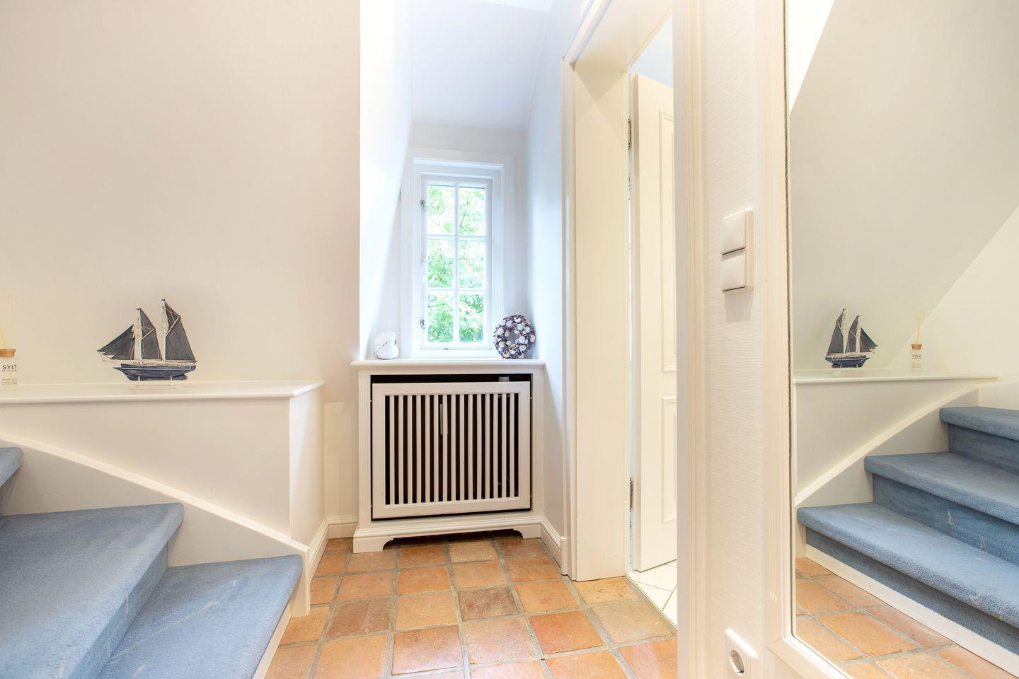 Diese stilvolle Ferien-Wohnung im Obergeschoß und ausgebautem Dachgeschoß in Südostlage eines Hartdachhauses ist ca. 83 m² groß und bietet bis vier Personen Platz. Das Haus liegt nur ca. 5 Gehminuten vom Wattenmeer entfernt. Zur Wohnung gehört ein kleiner Gartenplatz mit Strandkorb und Gartengestühl ( ca. April - Oktober ), gegenüber vom Eingang ( mit Friesenwall)