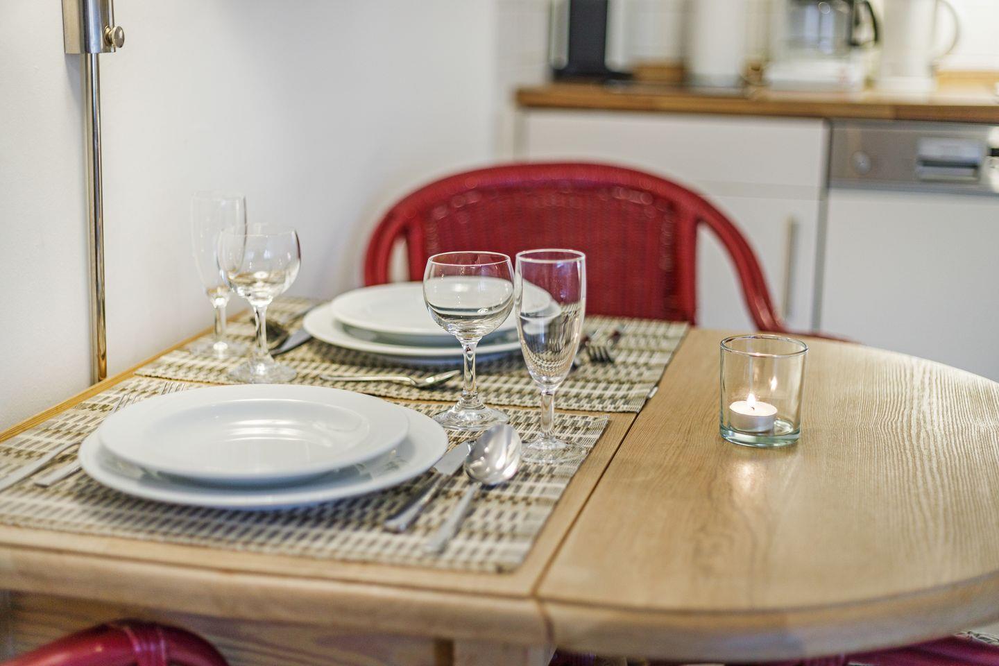 Der Wohnraum mit Sitzecke, Essplatz, TV, WLAN, sowie