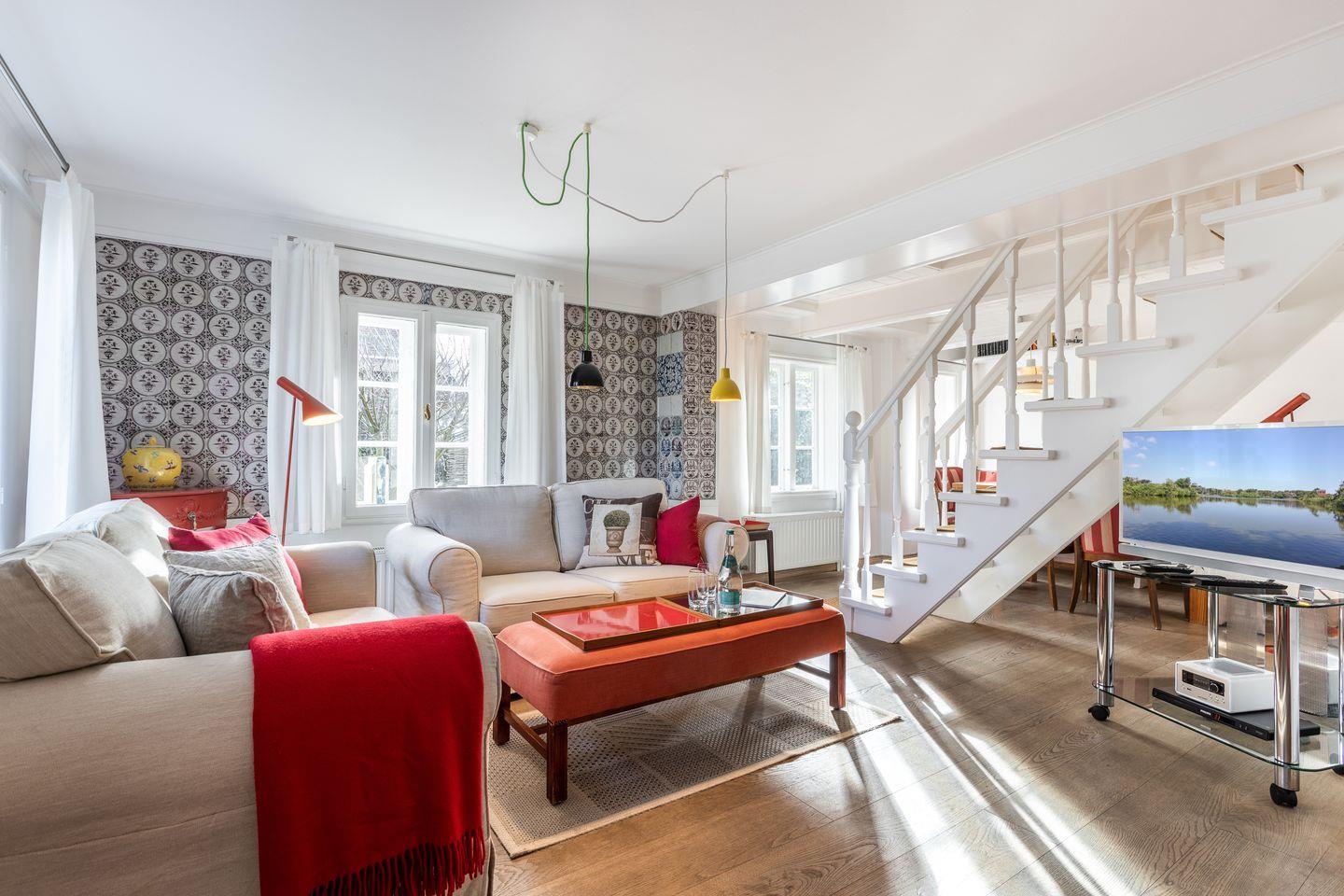Im Erdgeschoss des Hauses befinden sich die separate Küche, ein Duschbad und der Wohnbereich. Original "Delfter Fliesen" geben dem gemütlichen Wohnraum seinen besonderen Charme. Im 1. OG befinden sich die zwei Schlafzimmer und ein weiteres modernes Duschbad. Der Garten lädt zum Verweilen ein.