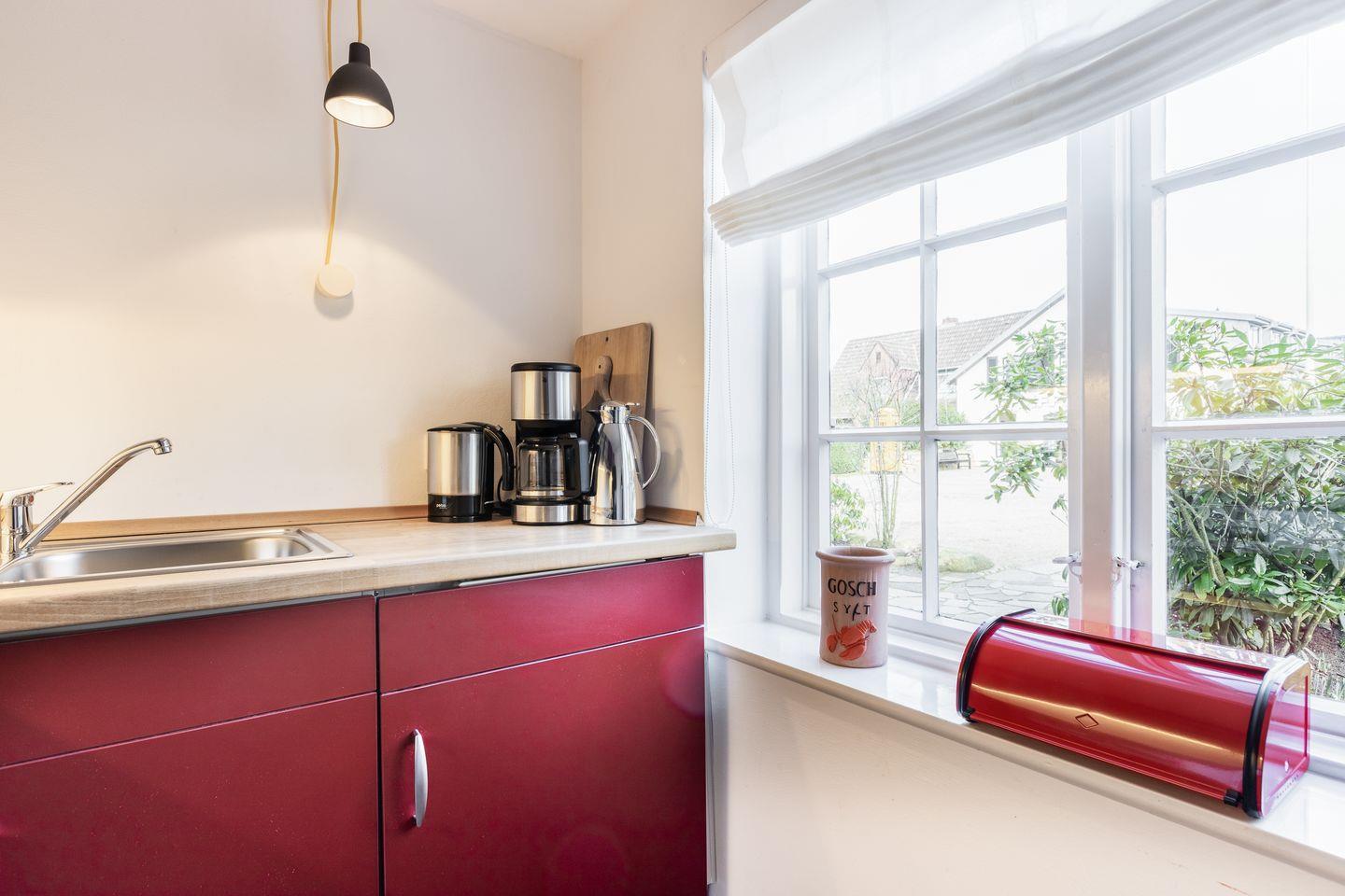 Der Ort Keitum besticht durch malerische Gärten, traditionelle Friesenwälle und alte Baumalleen. In wenigen Gehminuten sind sind Geschäfte, und das naheliegende Wattenmeer zu erreichen.
