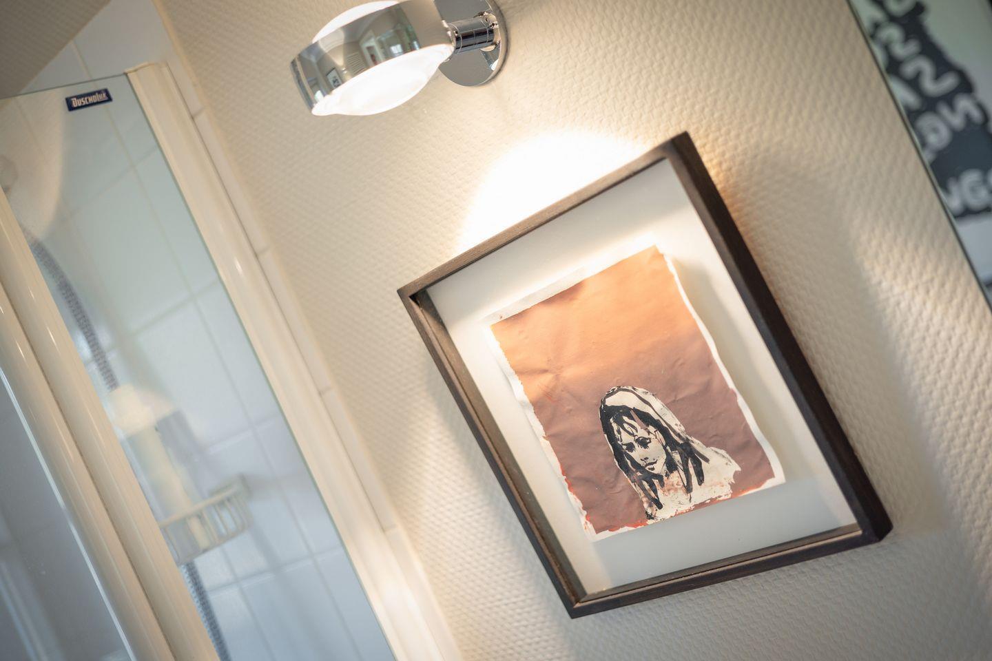Im Schlafzimmer erwartet Sie ein komfortables Bett, das zu erholsamen Nächten einlädt. Die ruhige Lage der Wohnung sorgt für eine entspannende Nachtruhe. Das Badezimmer ist modern eingerichtet und bietet sowohl eine Dusche als auch eine Badewanne – perfekt für entspannende Wellnessmomente nach einem Tag am Strand