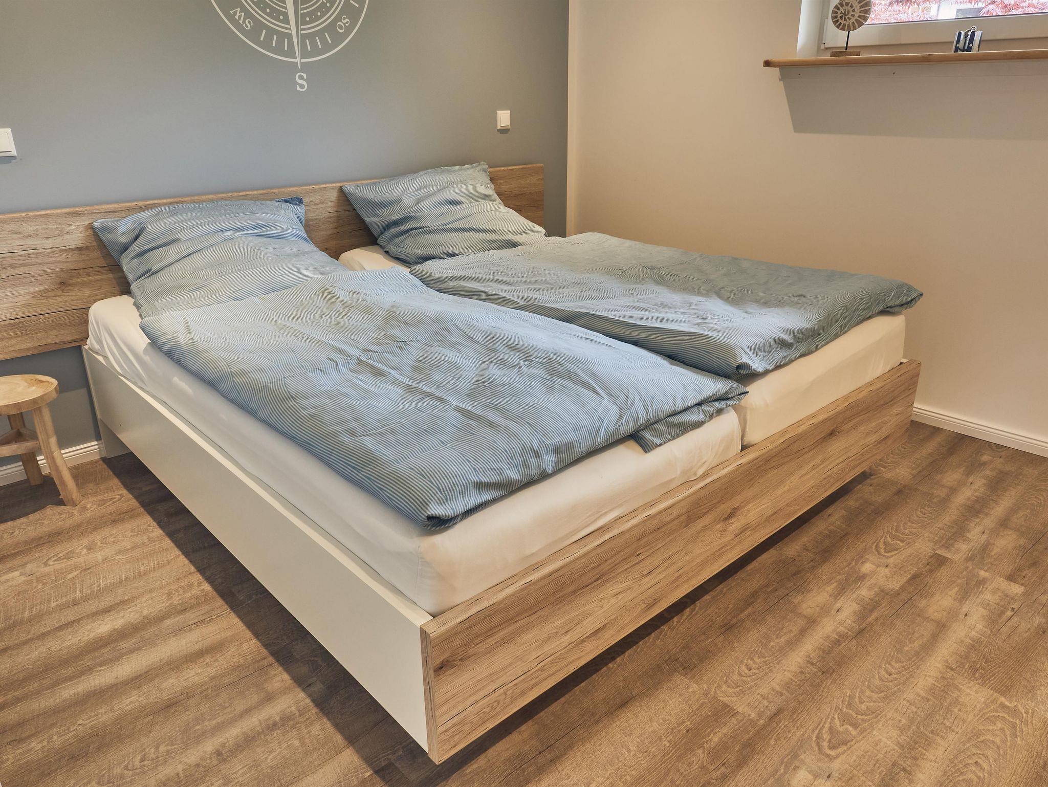 Im gemütlichen Schlafzimmer befindet sich ein Doppelbett (2,00x2,00m). Das Duschbad hat eine ebenerdige Dusche und viel Platz für Ihre Utensilien.