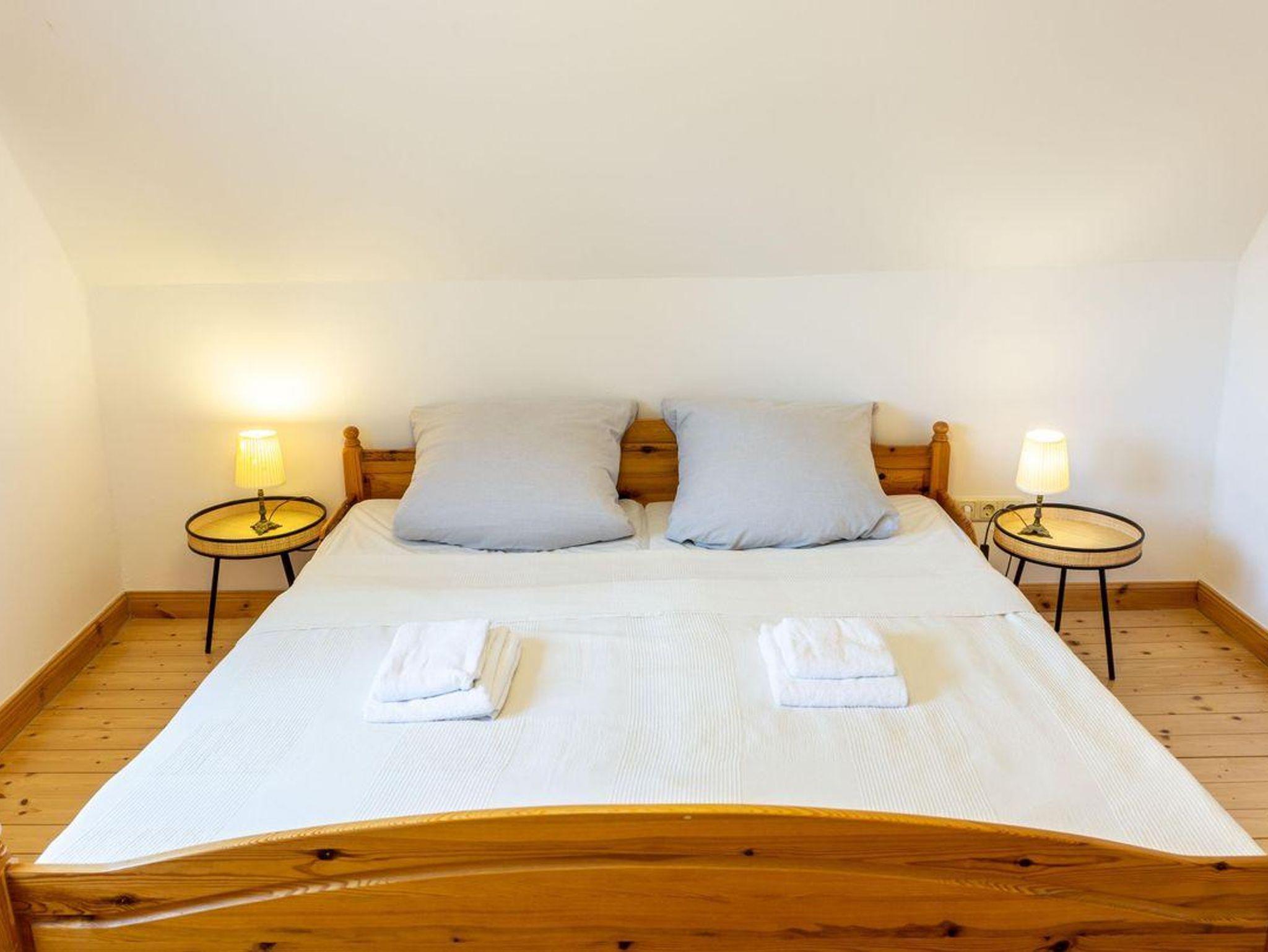 Mit zwei einladenden Schlafzimmern und insgesamt bis zu fünf Schlafmöglichkeiten (4 Erw., 1 Kind) finden sowohl Familien als auch Paare ausreichend Platz und Komfort für gelungene Urlaubstage. Das hintere Hauptschlafzimmer mit Doppelbett (200x180cm) im OG ist nur durch das vordere 2. Schlafzimmer mit Doppelbett (140x180cm) und einem Einzelbett (200x90cm) erreichbar. Für die Kleinen findet sich hier auch ein Babybett.