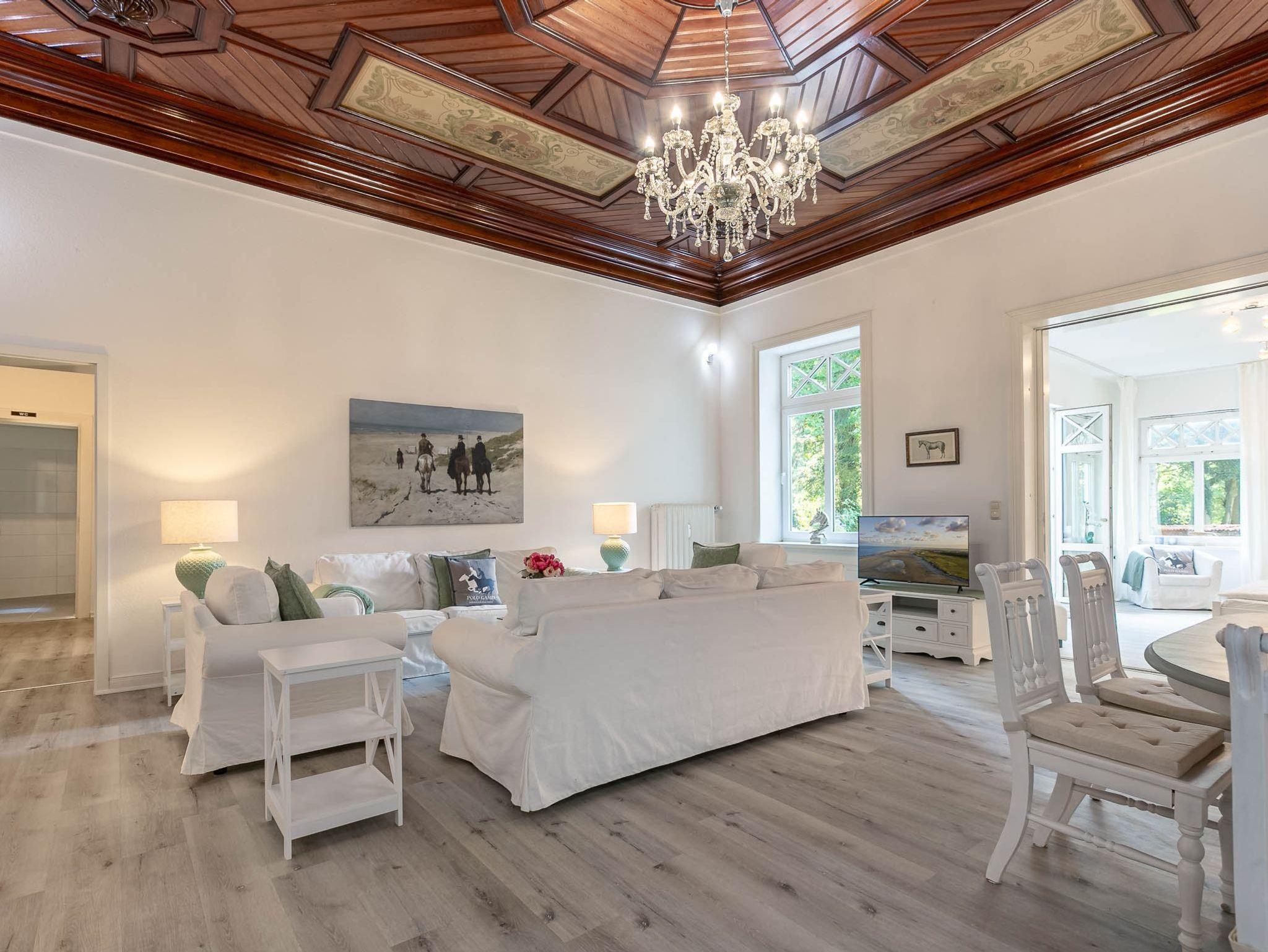 Komfortable 4-Zimmer-Ferienwohnung Altes Rathaus von 1845 im Haus Nordsee-Remise mit ca. 135 m² auf 1 Ebene (EG) für bis zu 6 Personen. Zentrale, aber ruhige Lage am Marktplatz der romantischen Hafenstadt Tönning. Viele Geschäfte und Restaurants befinden sich quasi vor der Haustür. Ieal für einen Familienurlaub an der Nordseeküste. Dieses Domizil befindet sich im ehemaligen Rathaus von Tönning und das Wohnzimmer war einst der Tönninger Gerichtssaal. Die wunderschöne historische Holzdecke erinnert an diese Vergangenheit.