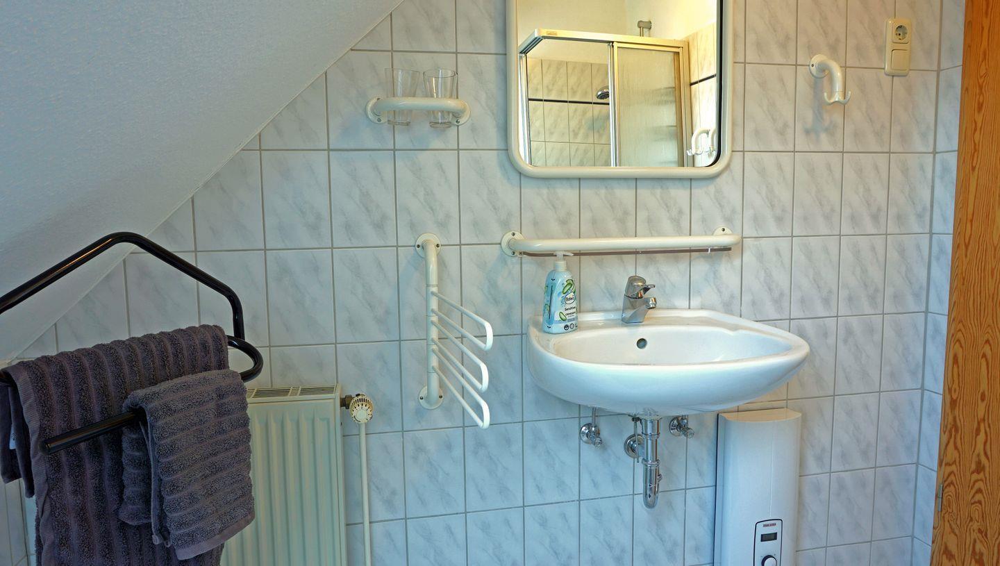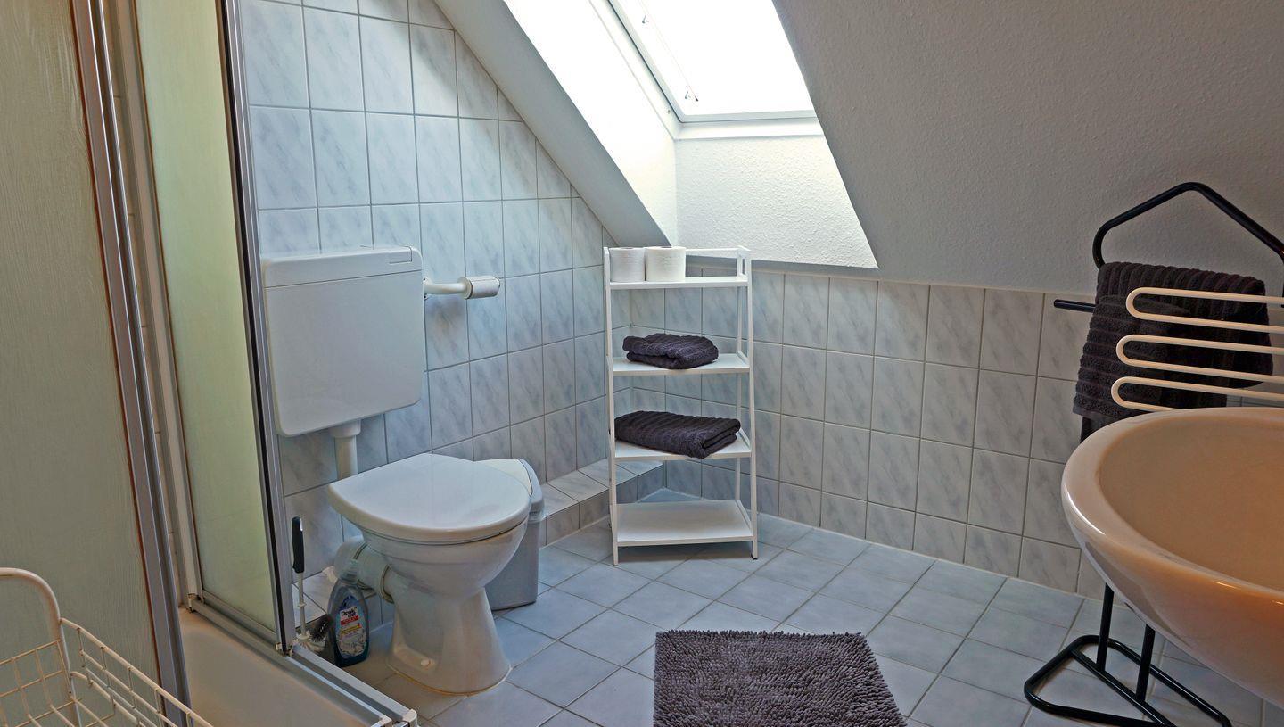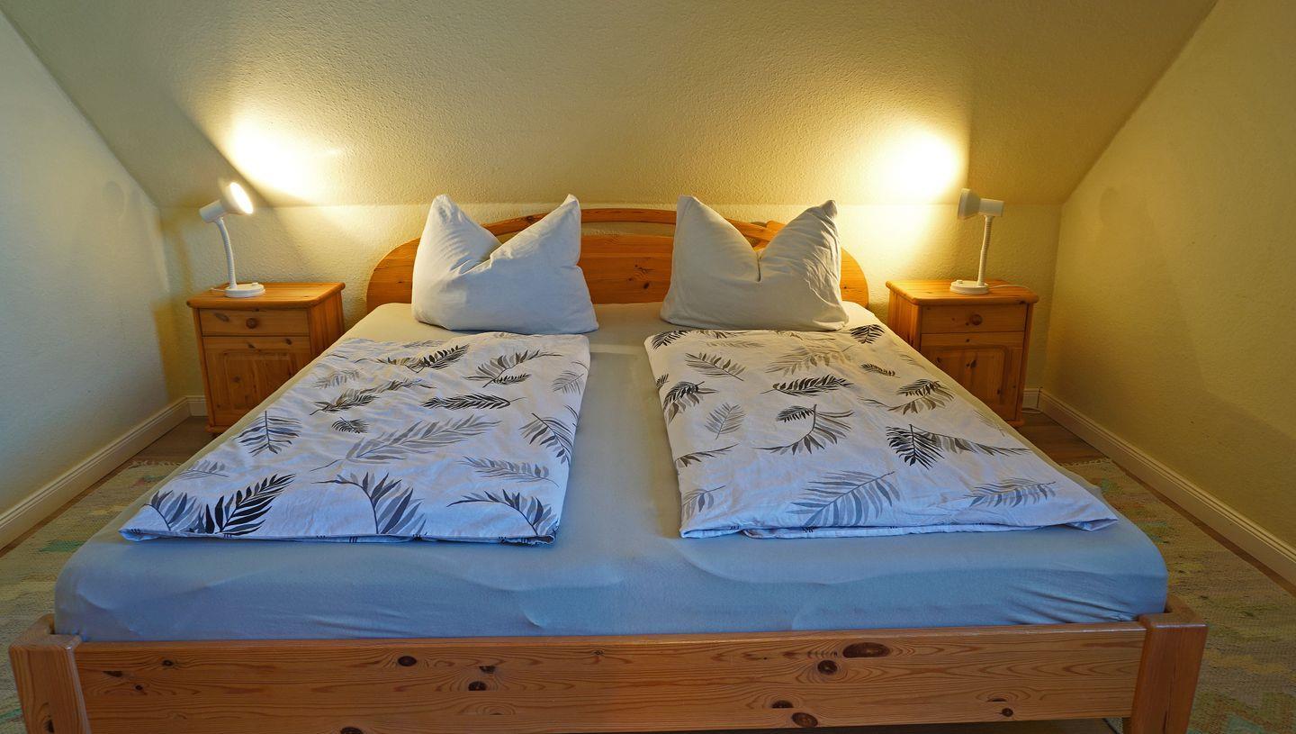 Über eine stilvolle Wendeltreppe gelangen Sie ins Obergeschoss, wo sich das Schlafzimmer befindet. Hier erwartet Sie ein komfortables Doppelbett (180 x200 cm) und ein geräumiger Kleiderschrank, der ausreichend Stauraum bietet. Das Duschbad mit WC und Waschbecken sorgt für zusätzlichen Komfort. Handtücher und Bettwäsche stellen wir Ihnen zur Verfügung.