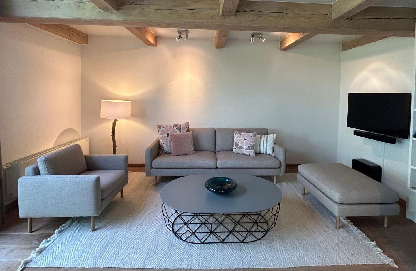 Das Wohnzimmer ist mit modernster Unterhaltungselektronik ausgestattet, darunter ein 40-Zoll-TV, eine Sonos-Hi-Fi-Anlage sowie ein Heimkino-System, damit auch regnerische Tage im Urlaub zum Vergnügen werden. Dank Glasfaser-Internet bleiben Sie auch im Urlaub stets verbunden, und ein Schreibtisch bietet Ihnen die Möglichkeit, bei Bedarf im Homeoffice zu arbeiten.