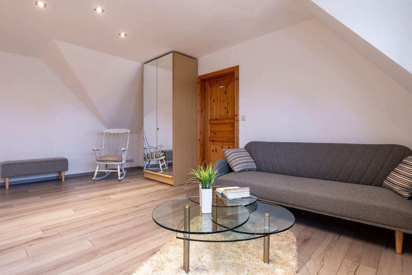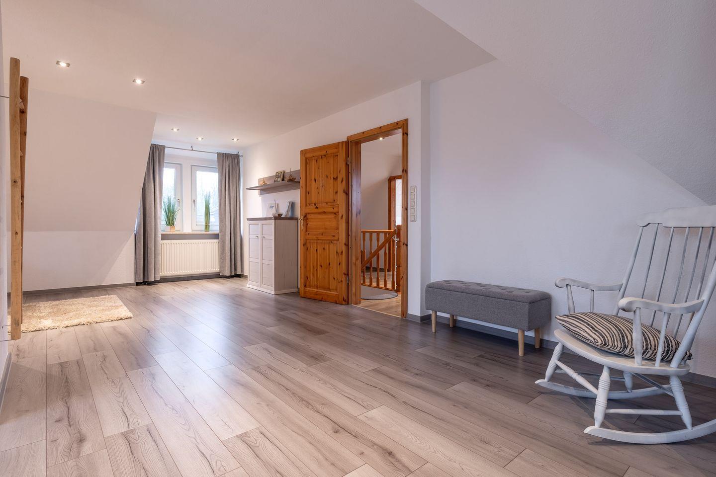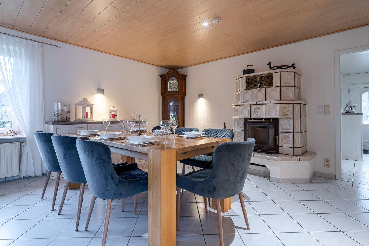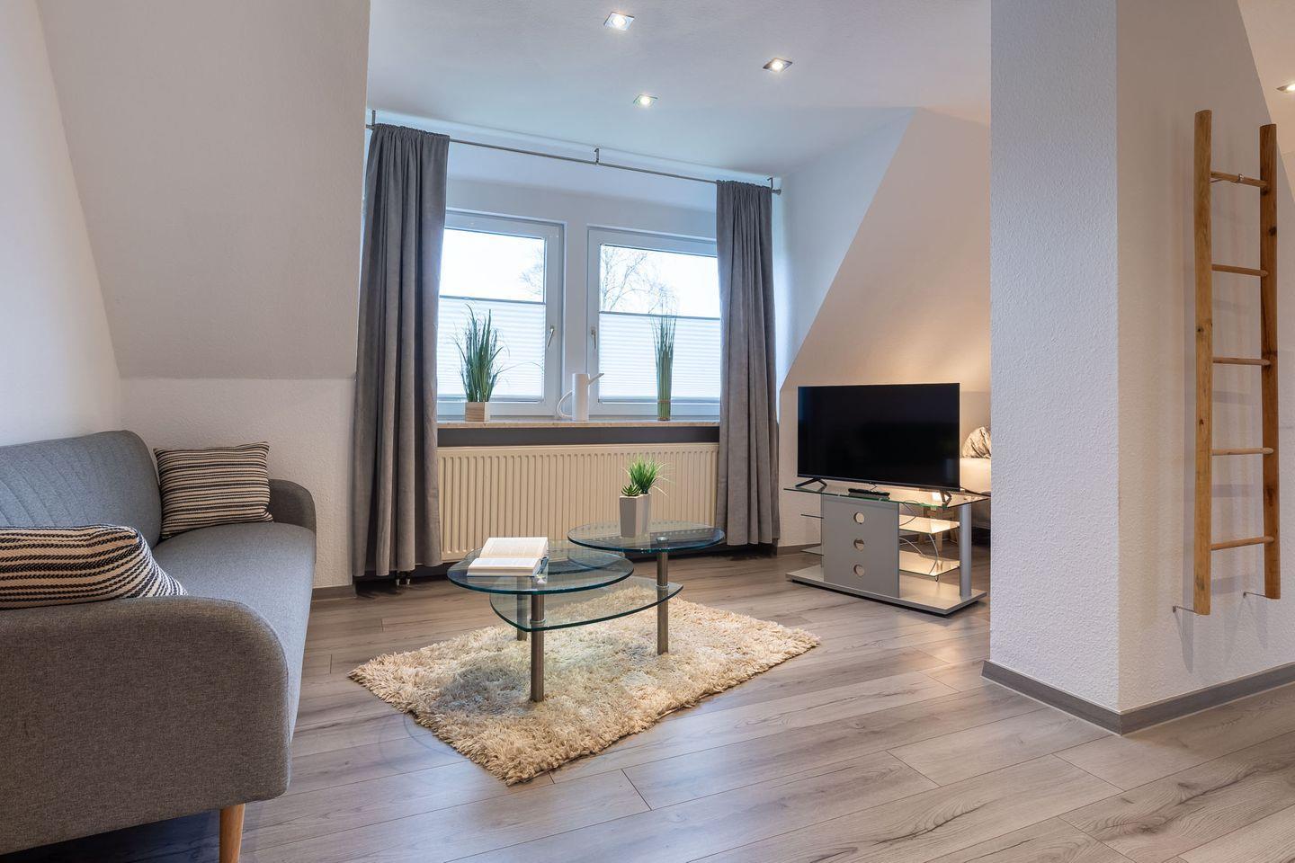 Die Ferienwohnung überzeugt mit einer modernen und gemütlichen Einrichtung. Der offene Wohnbereich lädt zum Verweilen ein, während die gut ausgestattete Küche das Herz jedes Hobbykochs höherschlagen lässt. Genießen Sie gemeinsame Mahlzeiten im großzügigen Essbereich oder entspannen Sie nach einem Tag an der Nordsee in der gemütlichen Sitzecke.