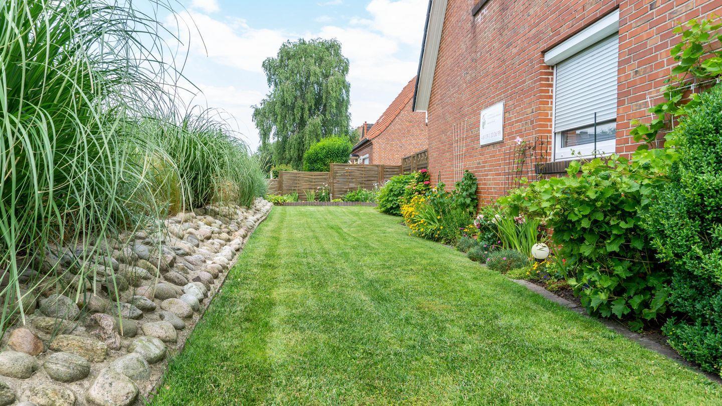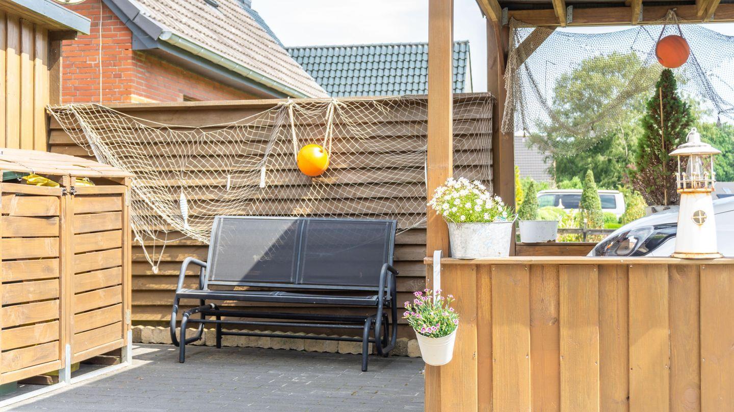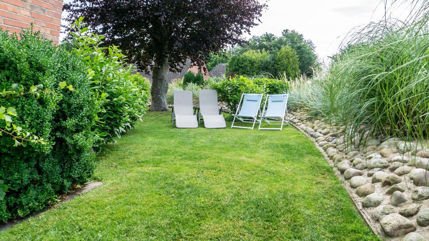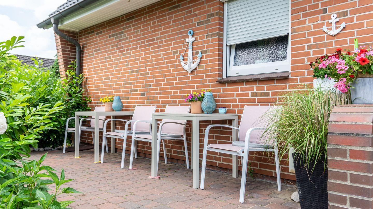 Genießen Sie entspannte Stunden auf der Terrasse, die mit Gartenmöbeln, Strandkorb, Sonnenliegen und Sonnenschutz ausgestattet ist. Ein Grill steht für gemütliche Abende zur Verfügung. Das Grundstück ist mit Sichtschutz an den Fenstern ausgestattet und bietet somit ausreichend Privatsphäre. Reisende mit Elektro-Fahrrädern profitieren von einer eBike-Ladestation mit Unterstellplatz.