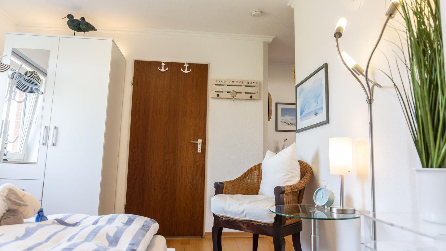 Die Wohnung befindet sich im ersten Stock und erstreckt sich über eine Ebene. Sie verfügt über ein separates Schlafzimmer, das mit einem bequemen Doppel-Bett (200x180cm) für erholsamen Schlaf sorgt. Zusätzlich stehen weitere Schlafmöglichkeit zur Verfügung im Wohnzimmer auf einem Schlafsofa (200x160cm) für 2. Bettwäsche wird gestellt.
