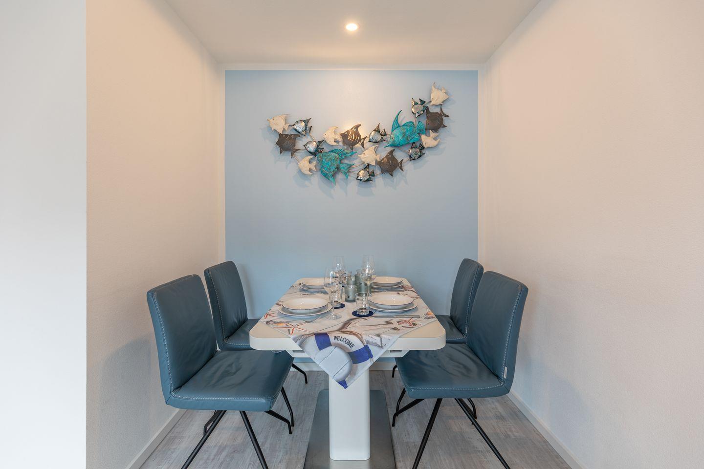 Die geschlossene Küche wurde umfassend modernisiert und ist vollständig ausgestattet, um sowohl einfache Mahlzeiten als auch aufwendige Gerichte problemlos zuzubereiten. Neben modernen Küchengeräten stehen zahlreiche praktische Helfer sowie eine Auswahl an Gewürzen zur Verfügung. Der angrenzende Essbereich bietet ausreichend Platz für gemeinsame Mahlzeiten in entspannter Atmosphäre und fördert das gesellige Zusammensein.