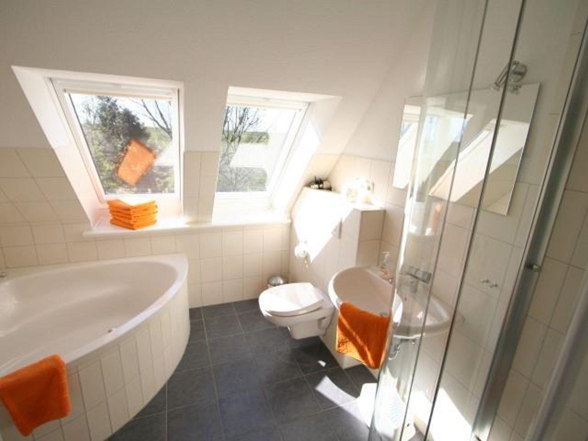 Die Ferienwohnung verfügt über einen großen, lichtdurchfluteten Wohnraum mit hoher Decke und sichtbarer Balkenlage und einen traumhaften Ausblick auf die Küstenlinie, dem Marschland und den alten Obstgarten. Der Wohnraum ist ausgestattet mit Sat-Farb-TV, DVD, Stereoanlage sowie einer Auswahl an Büchern und Spielen. Die offene Küche mit kleinem Tresen ist mit Geschirrspüler, Backofen, Ceranfeld, Kühlschrank, Gefriereinheit, Toaster, Kaffeemaschine, Wasserkocher und selbstverständlich ausreichend Geschirr und Zubehör ausgestattet. Die drei Schlafräume sind mit Doppelbett bzw. französischem Bett liebevoll hergerichtet. Das moderne Vollbad hat eine Eckbadewanne mit Panoramablick.